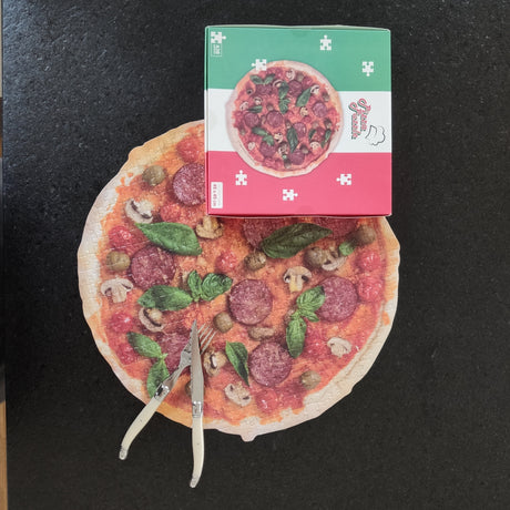 Pizza Salami Puzzle mit 438 Teilen in Pizzakarton