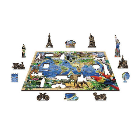 Wildtiere und Weltkarte Puzzle mit 150 Teilen aus Holz