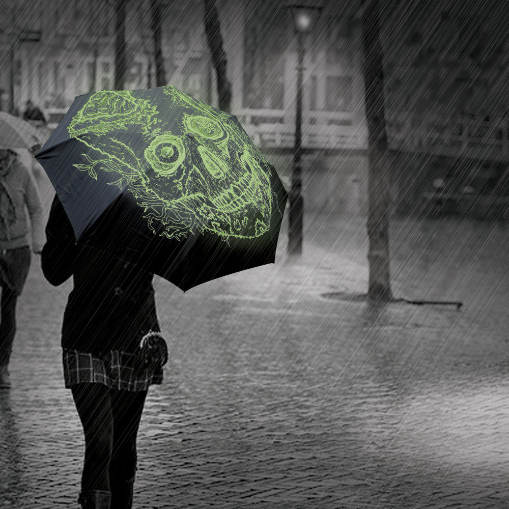 Totenkopf Regenschirm mit Glow in the Dark Effekt