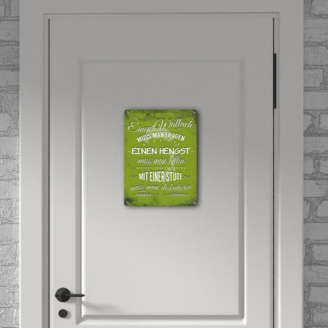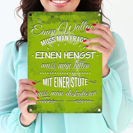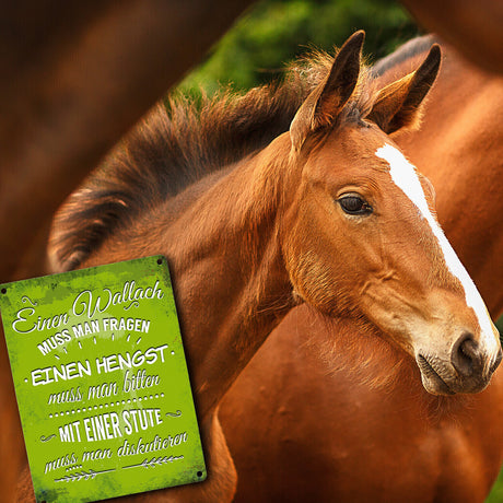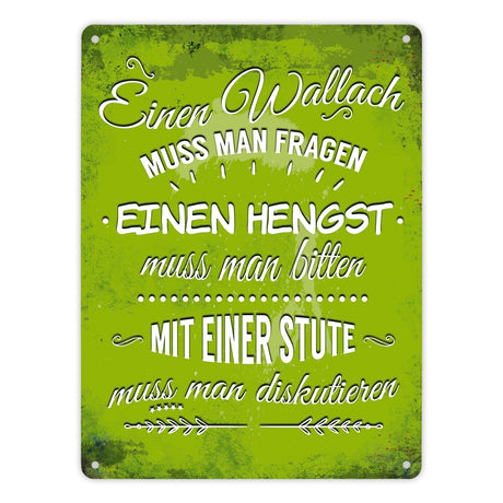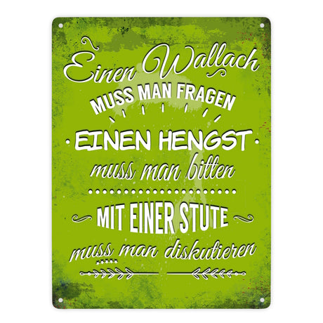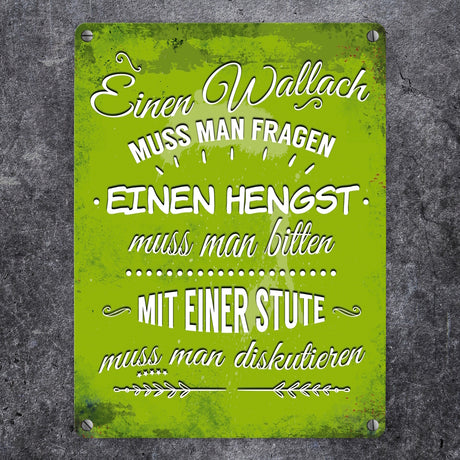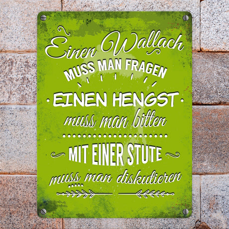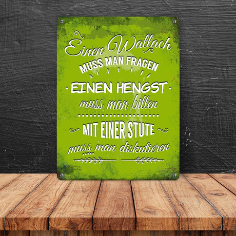 Ab €12,95Grundpreis /Nicht verfügbarAuf LagerMetallschild mit Reiter Motiv und Spruch: Einen Wallach muss man fragen, ...