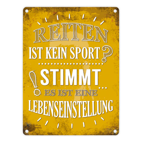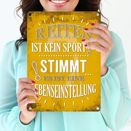 Metallschild mit Spruch: Reiten ist kein Sport? Stimmt, ...