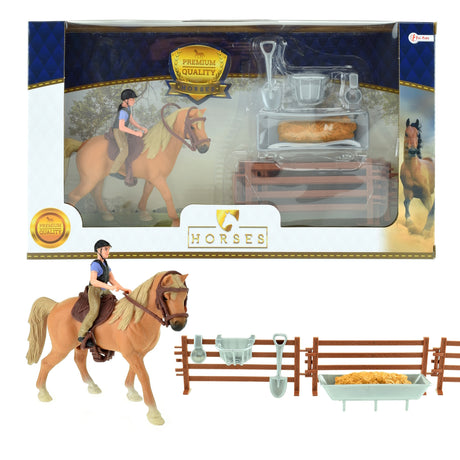 €11,95Grundpreis /Nicht verfügbar Spielzeug Pferd und Reiter Set mit Zäunen, Fresstrog und Zubehör