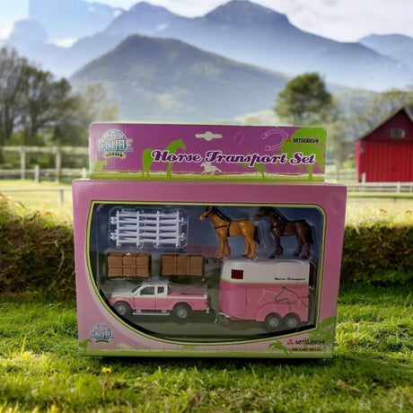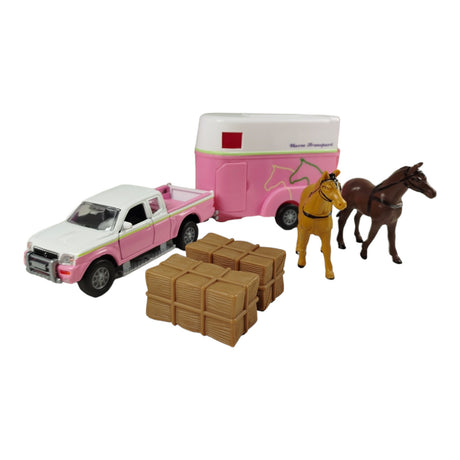 €20,95Grundpreis /Nicht verfügbarAuf LagerMitsubishi Pickup im Set mit Pferdeanhänger Spielzeugauto mit Pull Back Motor und Zubehör