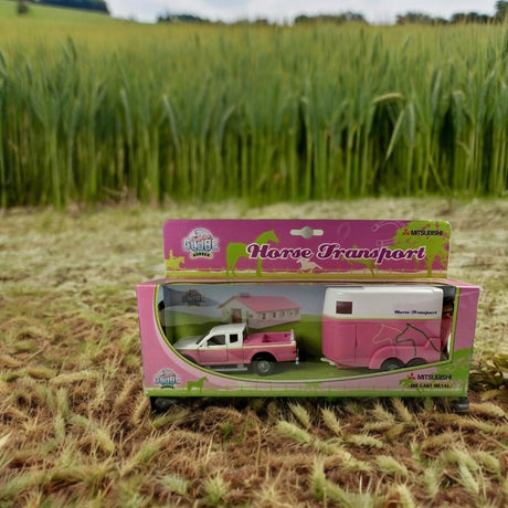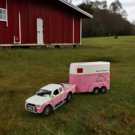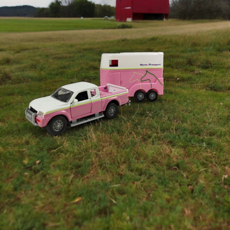 Ab €8,95Grundpreis /Nicht verfügbarAuf LagerMitsubishi Pickup mit Pferdeanhänger Spielzeugauto mit Pull Back Motor