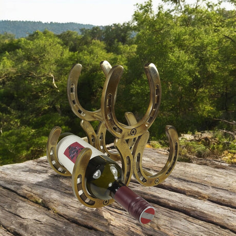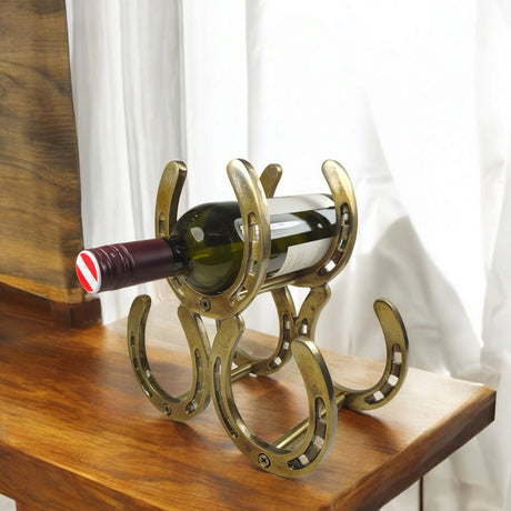 Ab €8,95Grundpreis /Nicht verfügbarAuf LagerHufeisen Flaschenhalter in Messingoptik - Weinflaschenhalter aus Metall