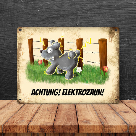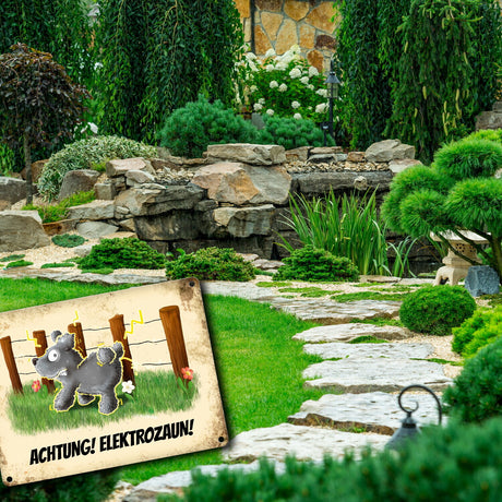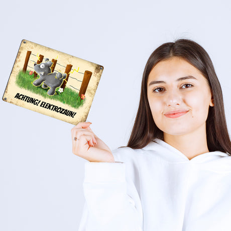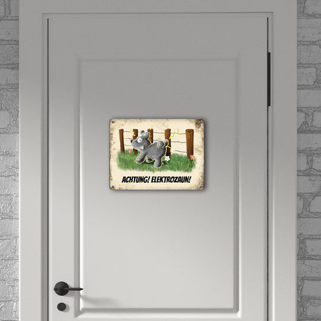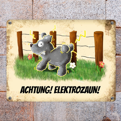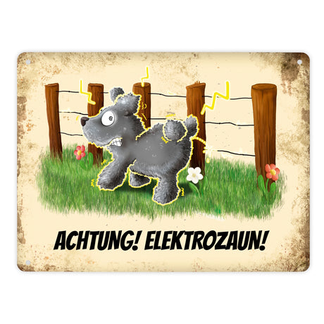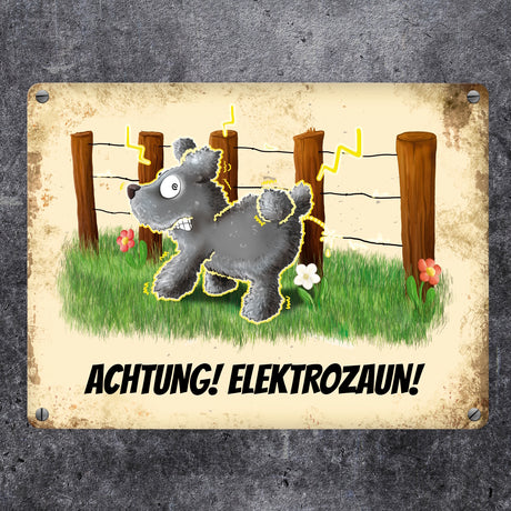 Ab €8,95Grundpreis /Nicht verfügbarAuf LagerMetallschild mit elektrisierendem Motiv und Spruch: Achtung! Elektrozaun!