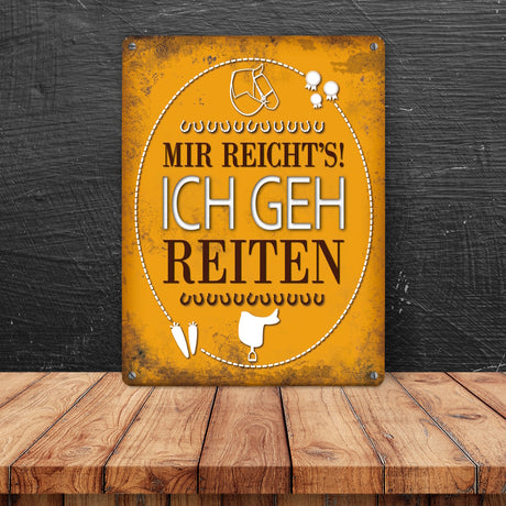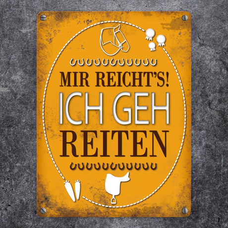 Ab €8,95Grundpreis /Nicht verfügbarAuf LagerMetallschild mit Spruch: Mir reichts! Ich geh reiten