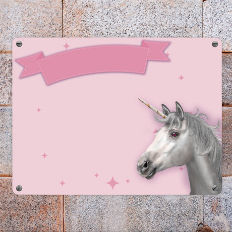 Ab €8,95Grundpreis /Nicht verfügbarAuf LagerMetallschild mit Einhorn Stalltafel Motiv zum selbst Beschriften