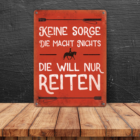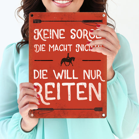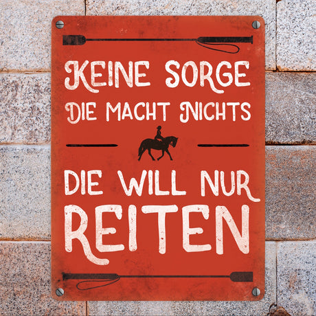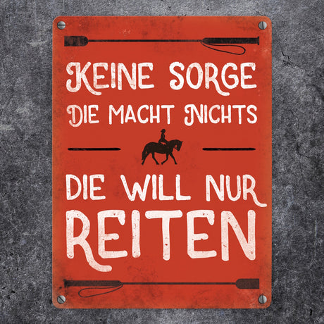 Ab €7,90Grundpreis /Nicht verfügbarAuf LagerMetallschild mit Reiter Motiv und Spruch: Keine Sorge, die macht nichts. ...