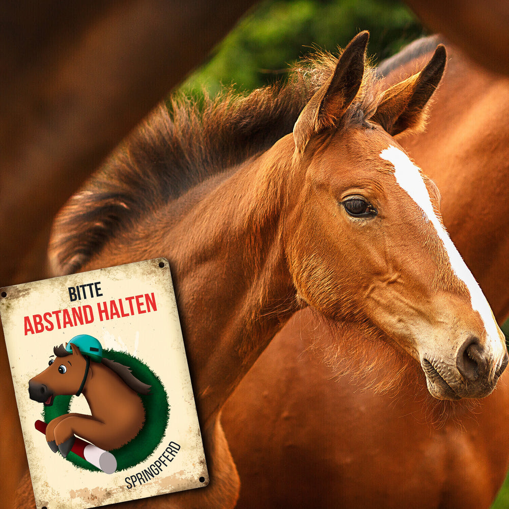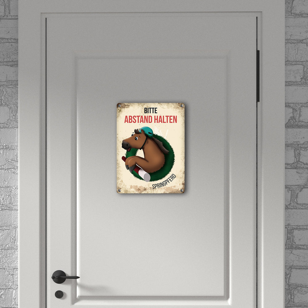• 1x Bitte Abstand halten - Springpferd Metallschild in der gewählten Größe