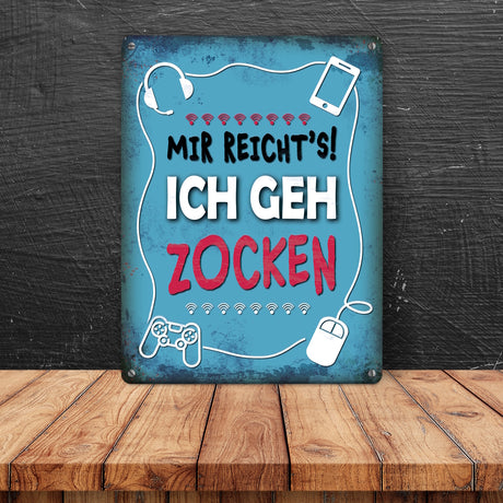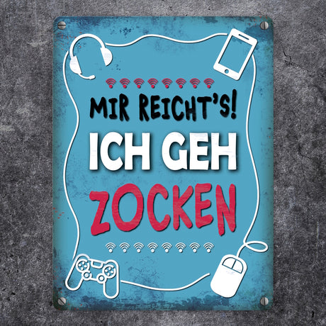 €11,95Grundpreis /Nicht verfügbarSehr geringer Bestand (1 Einheit)Metallschild mit Spruch: Mir reicht's! Ich geh zocken