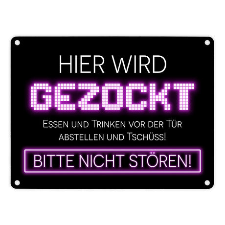 Gaming Zone Metallschild mit Pixel-Items für Zocker in lila