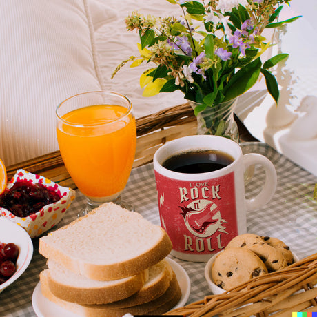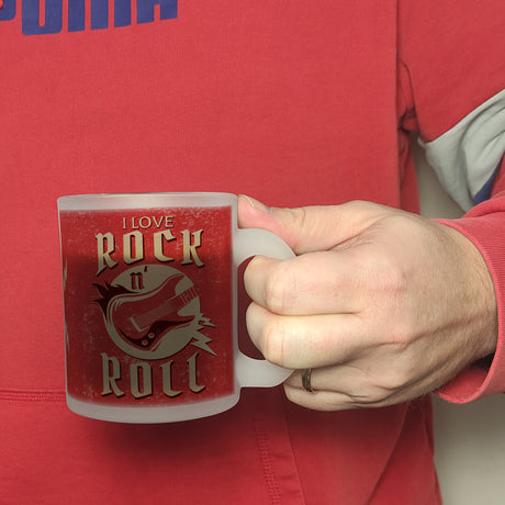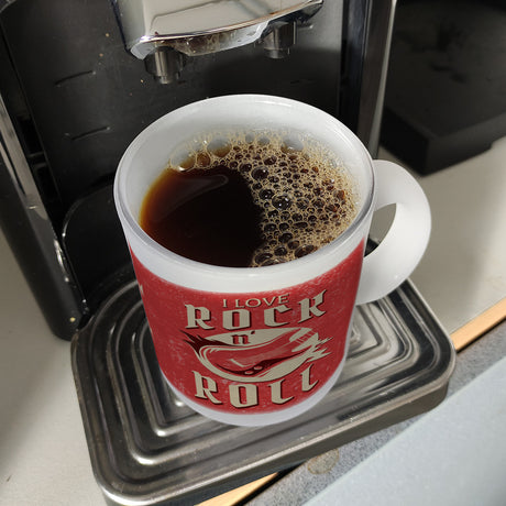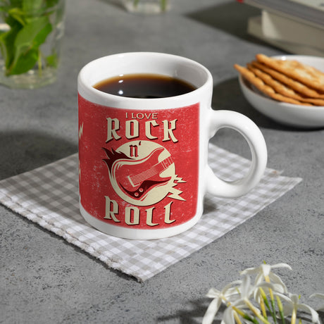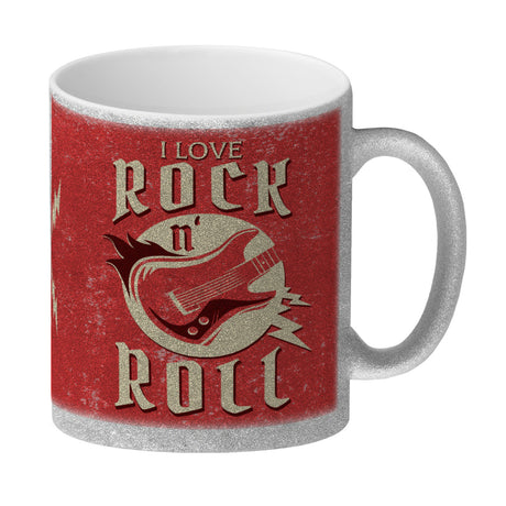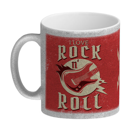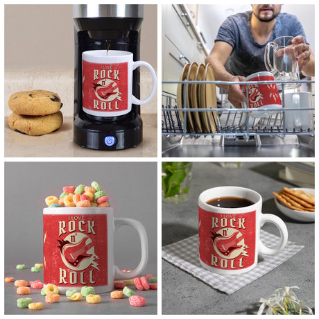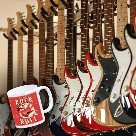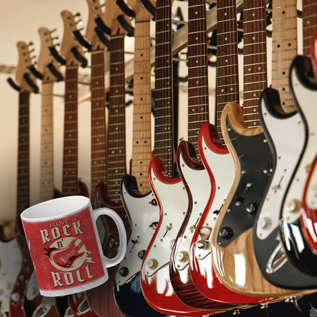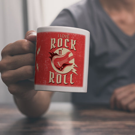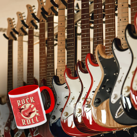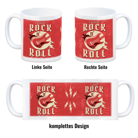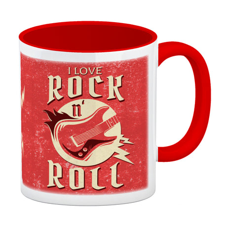 I Love Rock 'n' Roll Kaffeebecher mit Gitarren Motiv