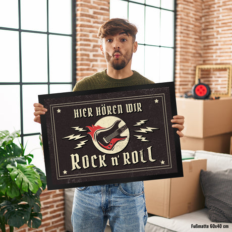 Ab €12,95Grundpreis /Nicht verfügbarAuf LagerHier hören wir Rock n' Roll Fußmatte mit Gitarren Motiv