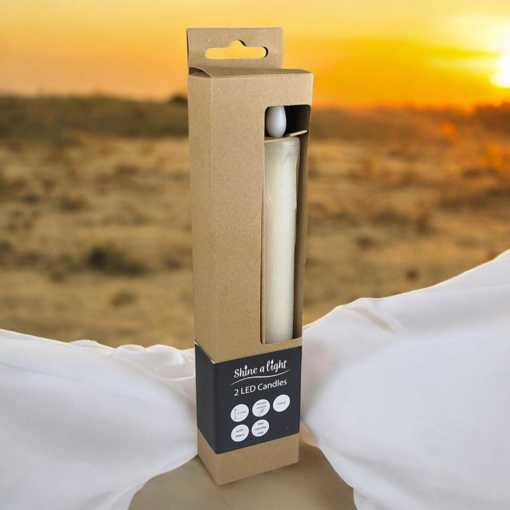 - 1x LED Stabkerze im 2er-Set mit Fernbedienung.