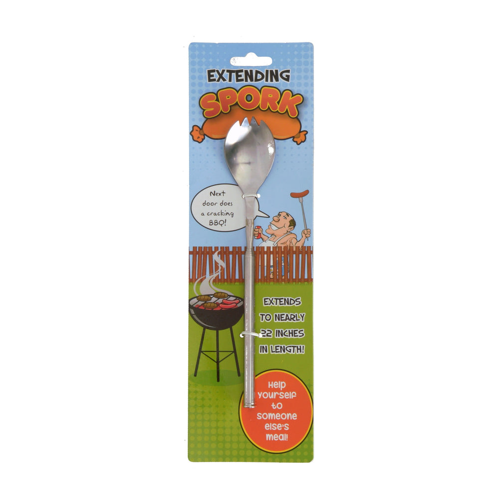 Wer den anderen gerne etwas vom Teller mopst, aber am anderen Tischende sitzt, kann mit dem ausziehbaren Göffel Abhilfe schaffen. Material: Metall | Bitte beachten Sie die Warnhinweise auf der Verpackung. Nur von Hand waschen - nicht für die Spülmaschine geeignet.