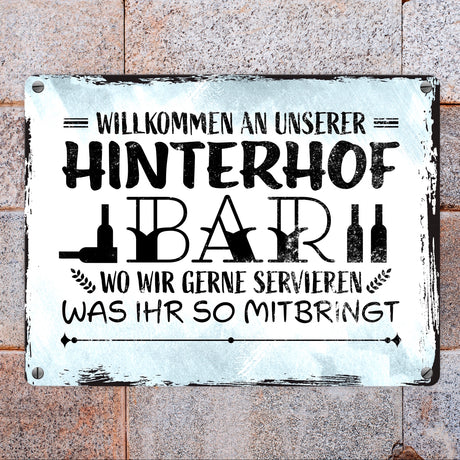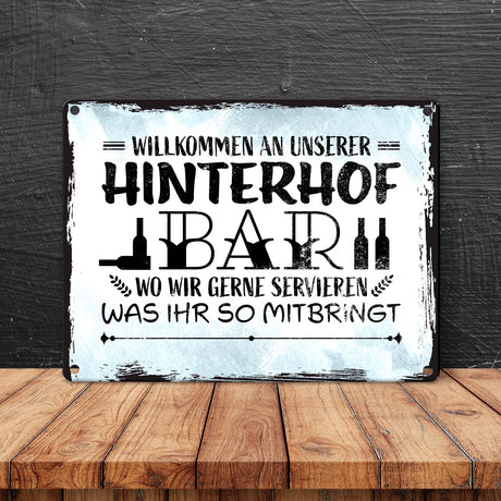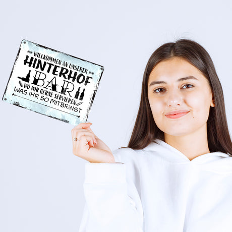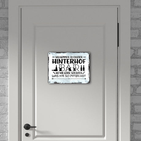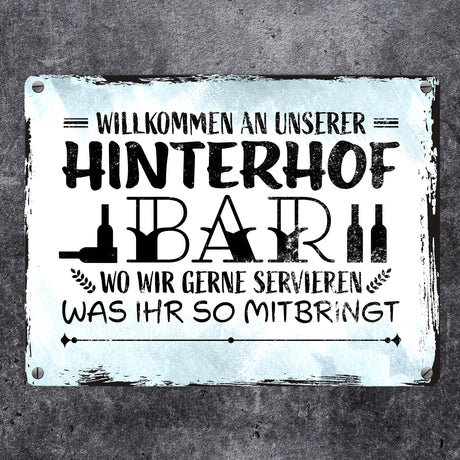 Ab €8,95Grundpreis /Nicht verfügbarAuf LagerWillkommen an unserer Hinterhofbar Metallschild mit lustigem Spruch