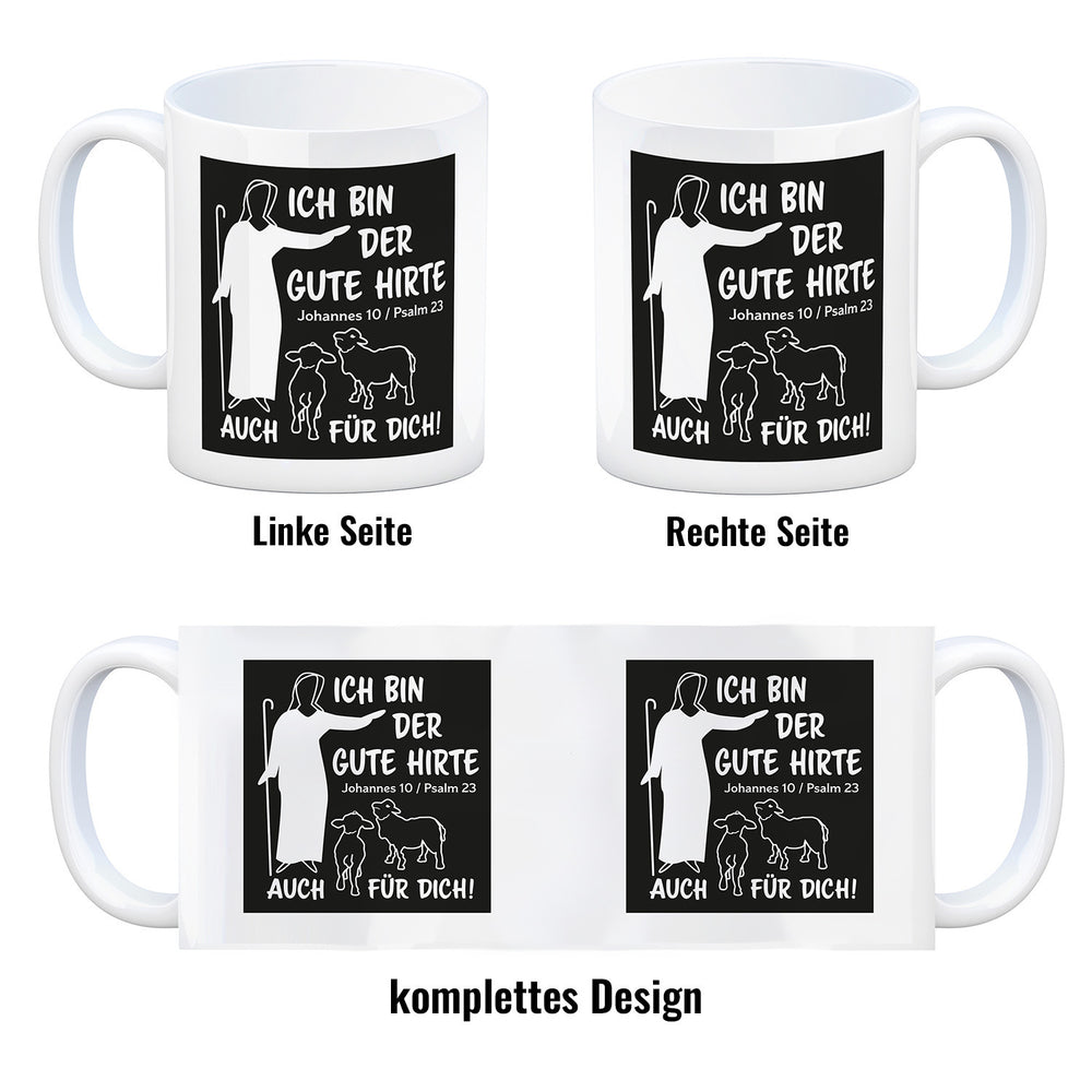- 1x Johannes 10 Psalm 23 Kaffeebecher mit Spruch Ich bin der gute Hirte auch für dich in der gewählten Ausführung