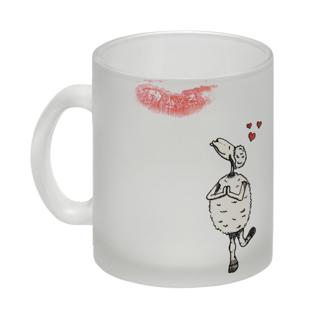 Kaffeebecher mit Putz-Schaf und Lippenstift Motiv