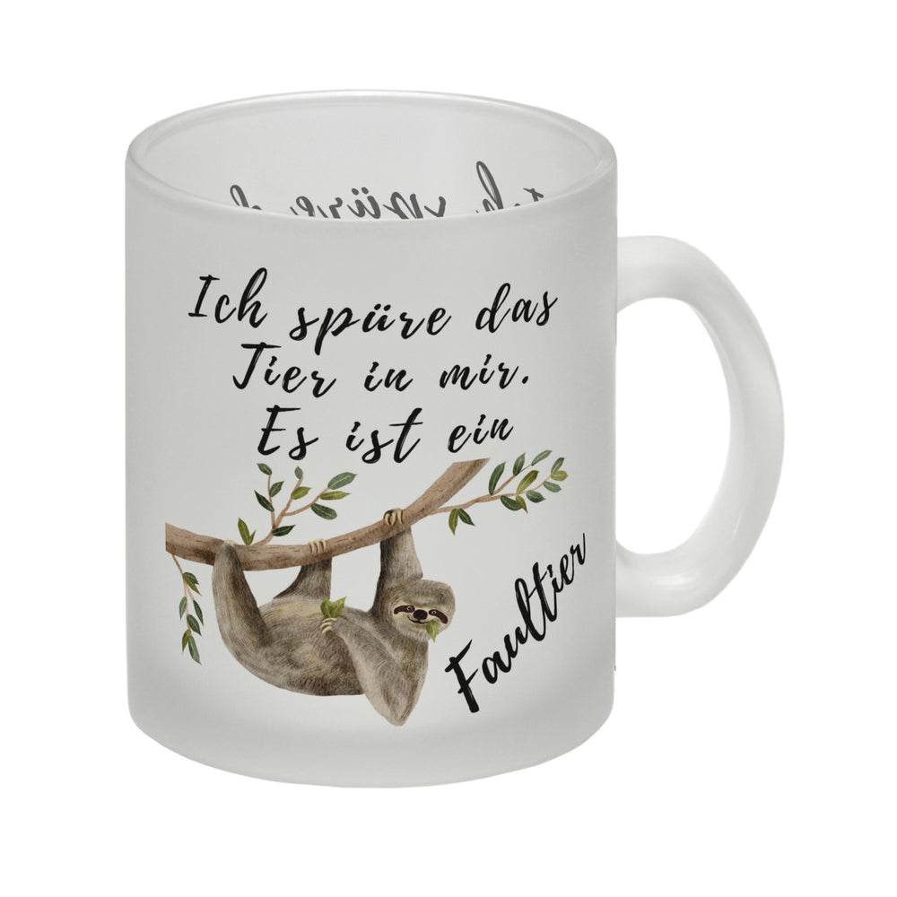 • 1x Faultier Kaffeebecher mit Spruch Ich spüre das Tier in mir in der gewählten Ausführung