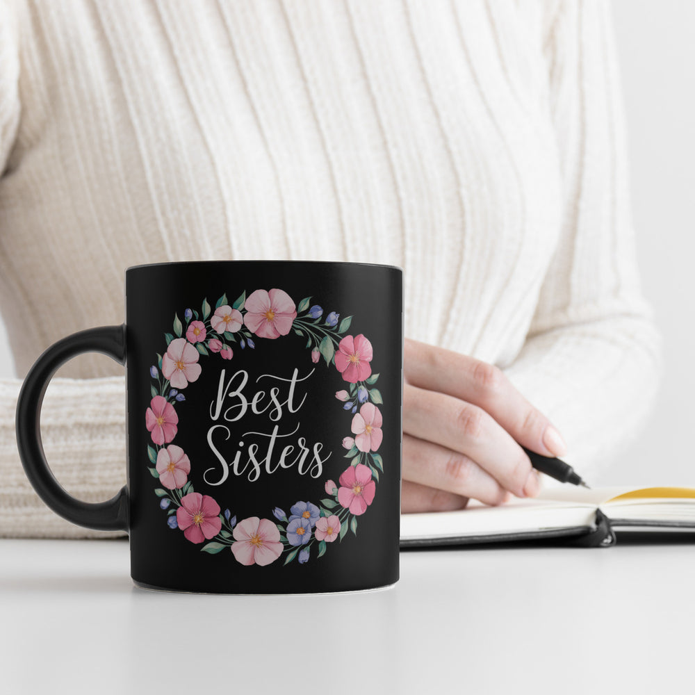 - Der zauberhafte Kontrast der leuchtenden Farben gegen den schwarzen Hintergrund macht diese Tasse zu einem echten Hingucker – ein Kunstwerk für den Frühstückstisch! Die elegante, weiße Schrift des "Best Sisters"-Mottos sorgt dafür, dass keiner die frohe Botschaft übersieht. Perfekt, um die Schwester in deinem Leben zu überraschen!