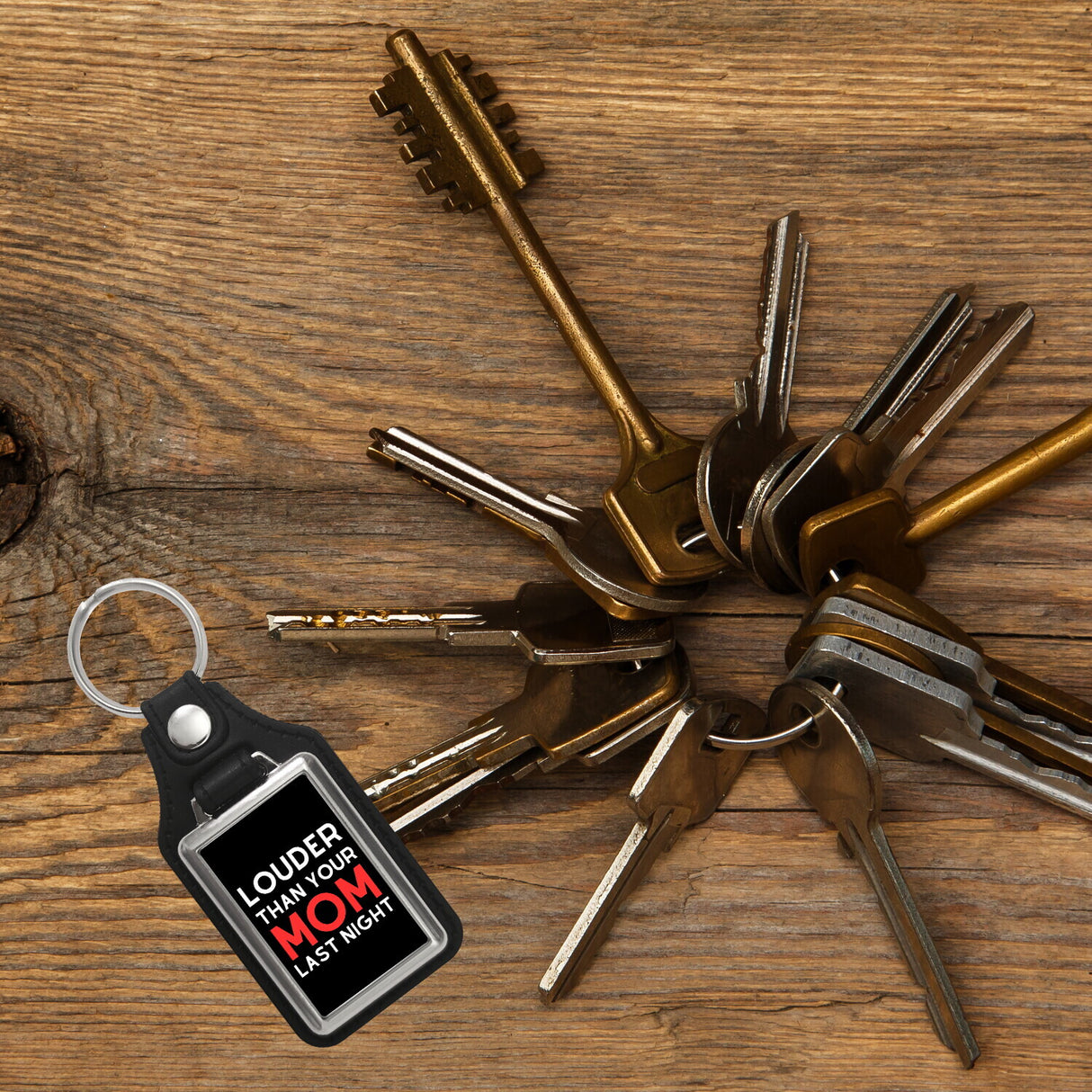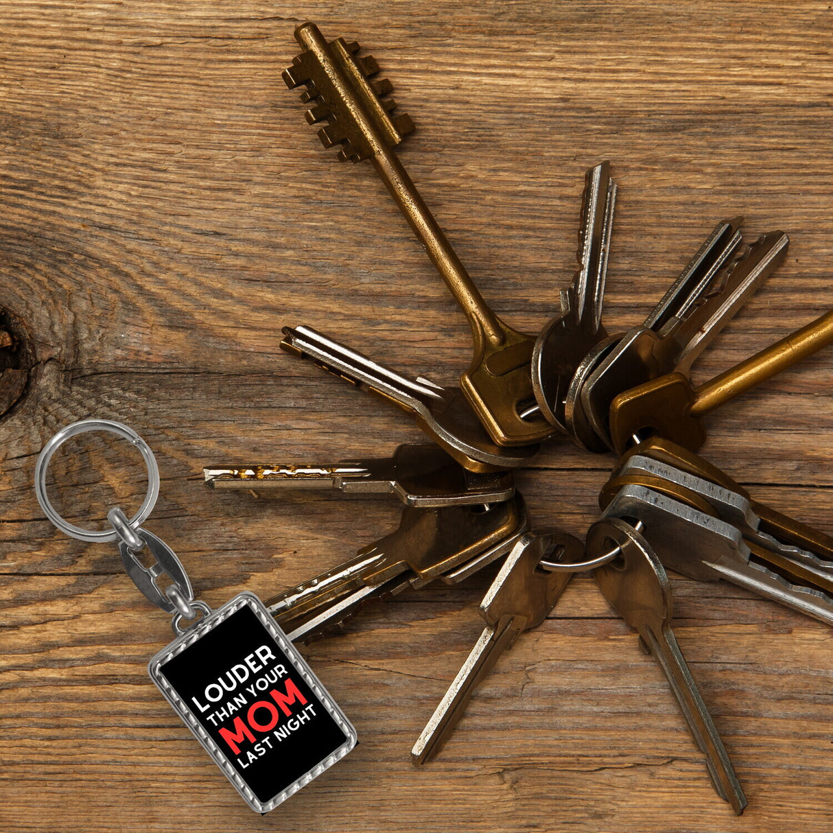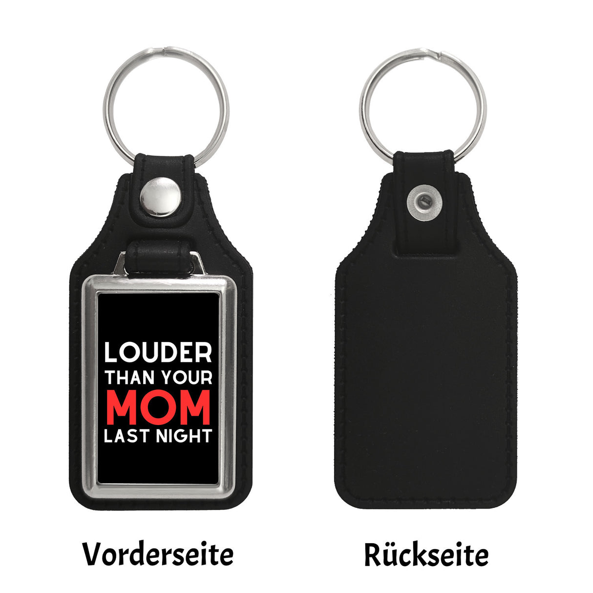 - Der Schlüsselanhänger mit dem frechen Louder than your mom last night Motiv ist ein echter Hingucker. In schlichtem Schwarz mit weißer Schrift ist er das perfekte Accessoire für Autotuner und PS-Junkies. Denn wer liebt es nicht, mit einem witzigen Spruch auf den Lippen seinen Schlüsselbund zu schmücken?