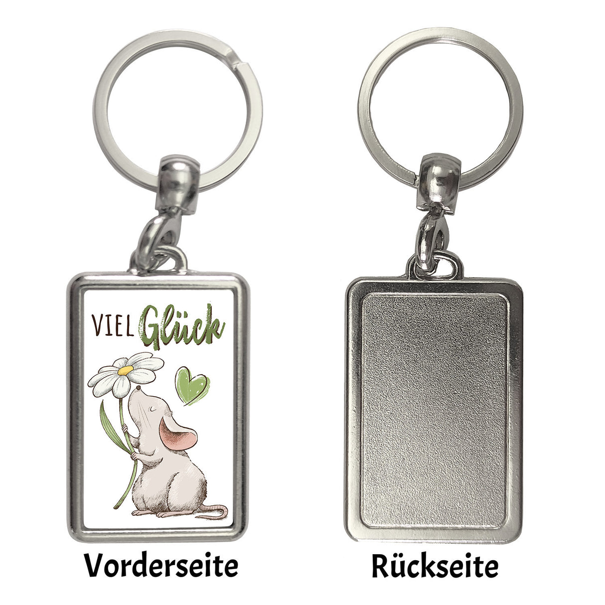 - 1x Maus Schlüsselanhänger mit Spruch Viel Glück in der gewählten Ausführung