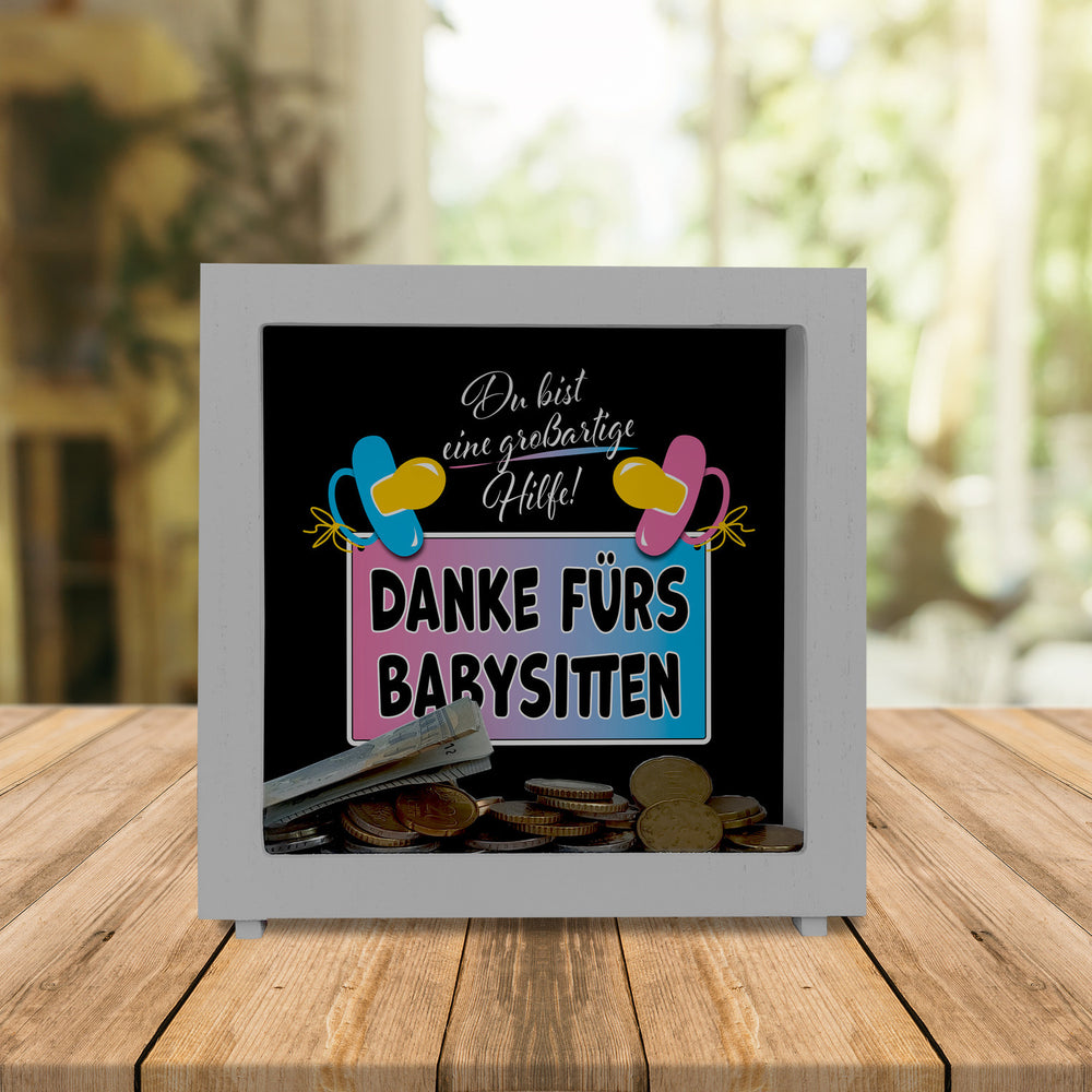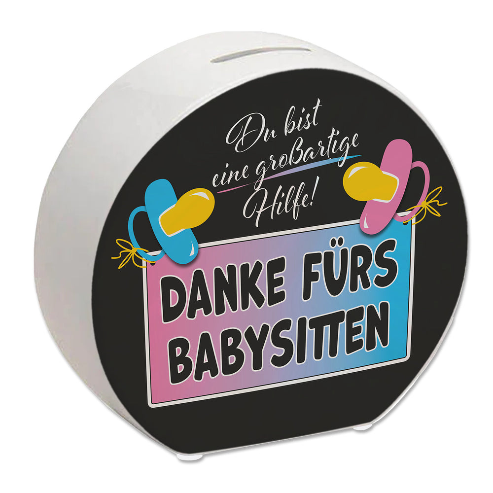 - 1x Schnuller Spardose mit Spruch Großartige Hilfe danke fürs Babysitten in der gewählten Ausführung