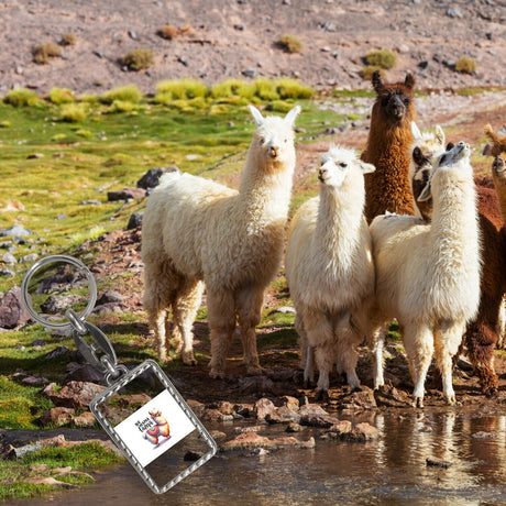 €10,49Grundpreis /Nicht verfügbar Alpaka mit bunter Satteldecke Schlüsselanhänger mit Spruch No Drama Lama