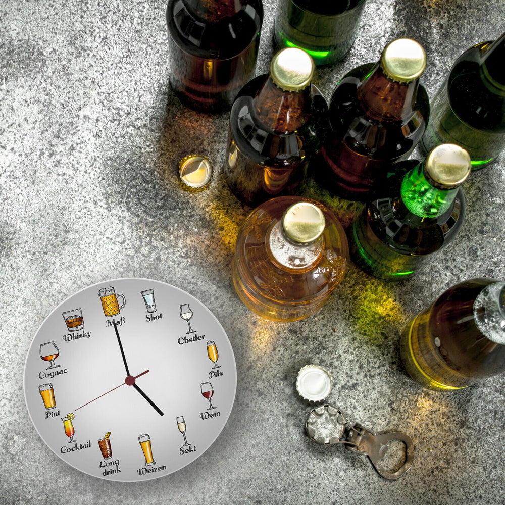 - Du wohnst in einer WG und suchst nach einer lustigen Dekoration, die deine Leidenschaft für alkoholische Getränke widerspiegelt? Dann ist diese witzige Uhr perfekt für dich geeignet. Die Uhr regt dazu an, die Uhrzeit neu zu interpretieren.