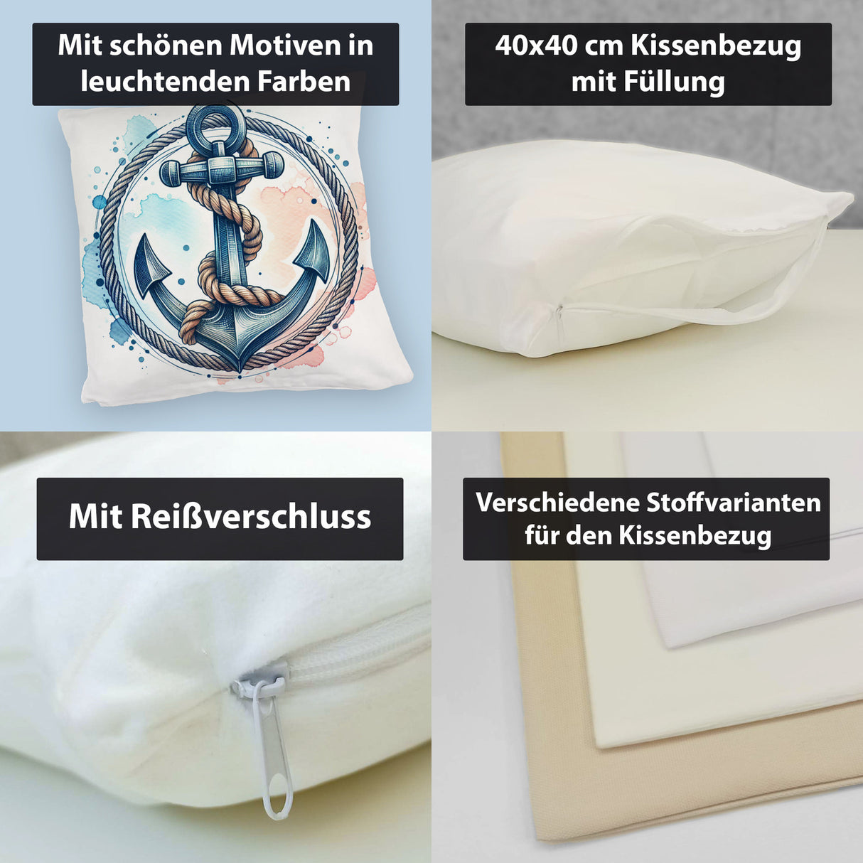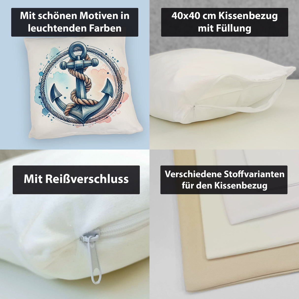 • 1x Anker mit Seil Kissen in der gewählten Ausführung
