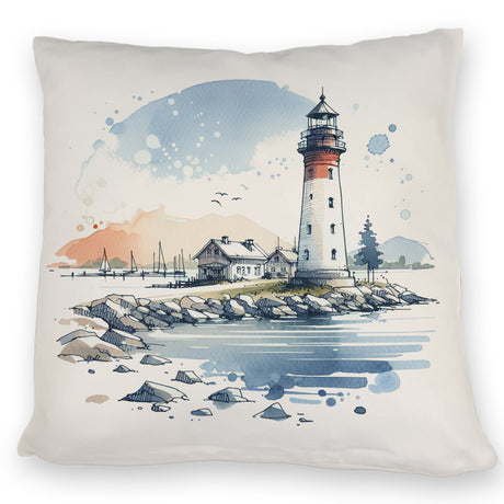 Leuchtturm mit Häuser im Hintergrund Kissen