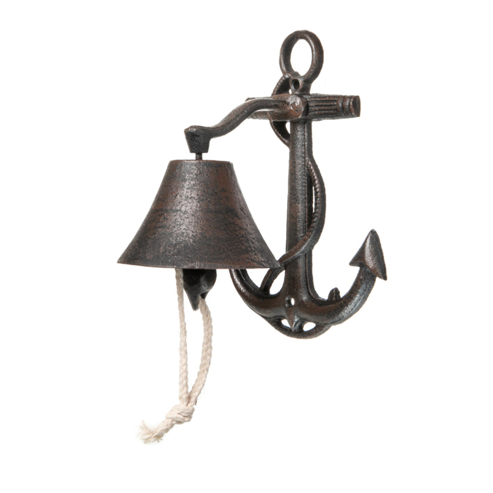Mit der Anker Türglocke aus Gusseisen bringen Sie ein stilvolles Accessoire in Ihr Zuhause. Diese Glocke besteht komplett aus Gusseisen und hat eine braune Farbe, wodurch sie sich perfekt in jeden Eingangsbereich integriert. Der Anker wird durch ein Schiffstau verziert und die Glocke an der Halterung mit einer Schraube befestigt. Zum Läuten des Glockenspiels befindet sich ein weißes Seil am Schlägel. Mit ihren Maßen von ca. 20,5cm x 15cm x 14,5cm ist die Türglocke sehr dekorativ und gibt beim Läuten einen lauten Ton von sich. Bringen Sie den maritimen Charme in Ihr Zuhause und erfreuen Sie sich an dem schönen Klang der Anker Türglocke aus Gusseisen!