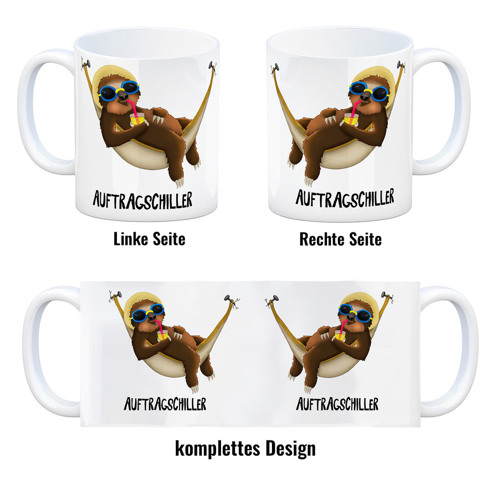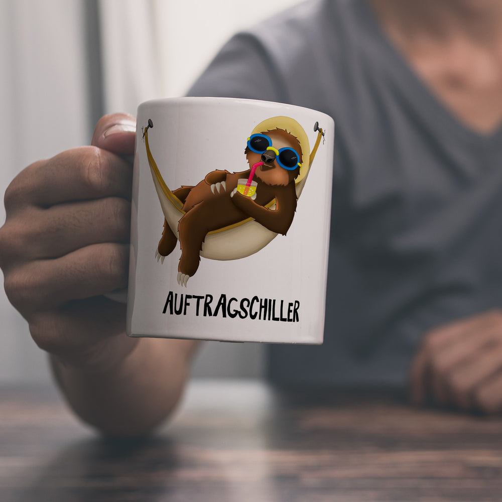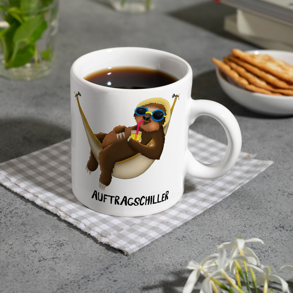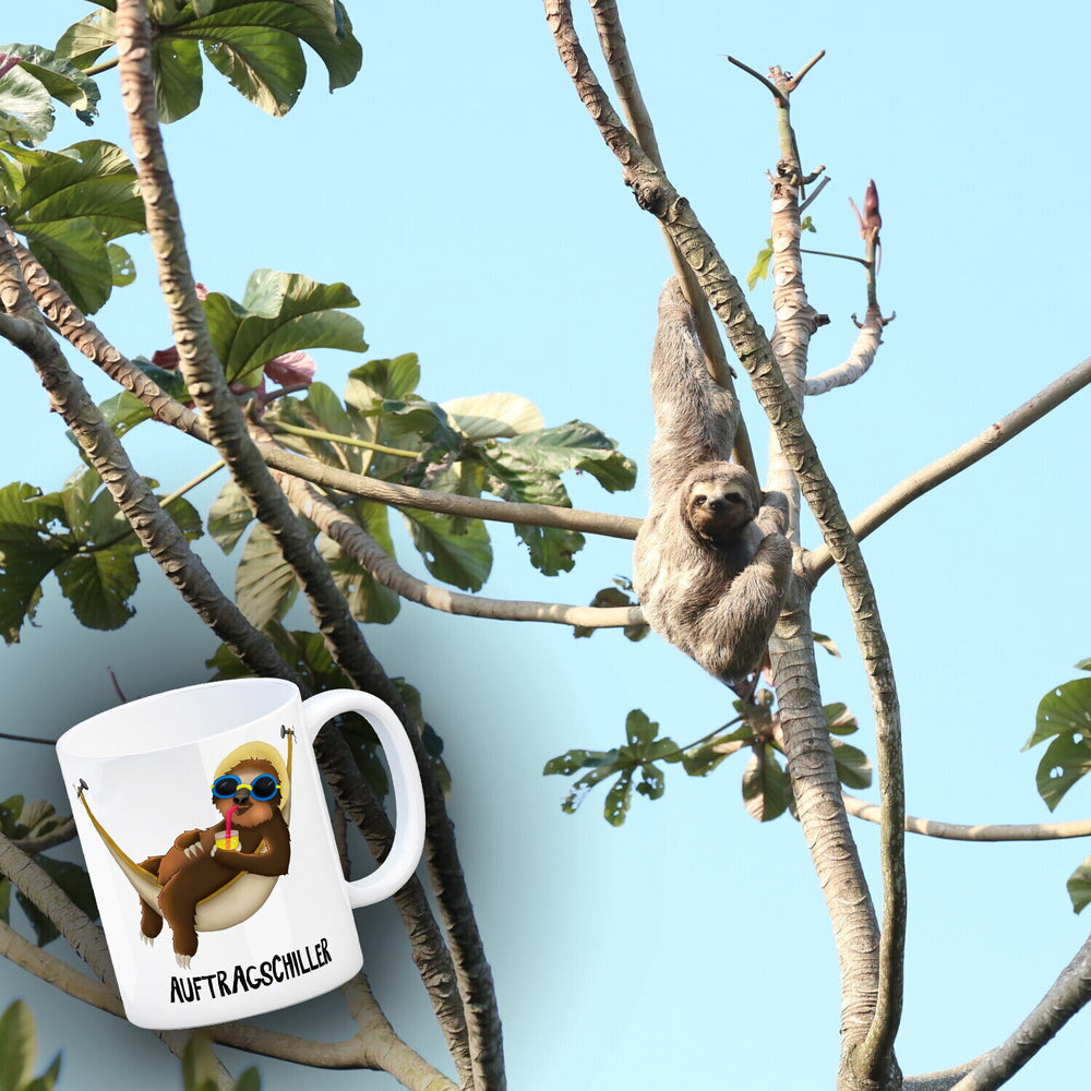 - Lieferumfang: 1x Kaffeebecher mit Faultier in Hängematte Motiv und Spruch: Auftragschiller