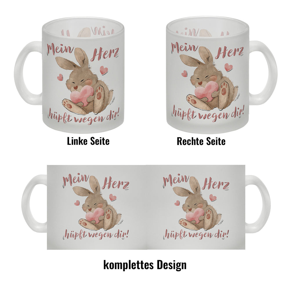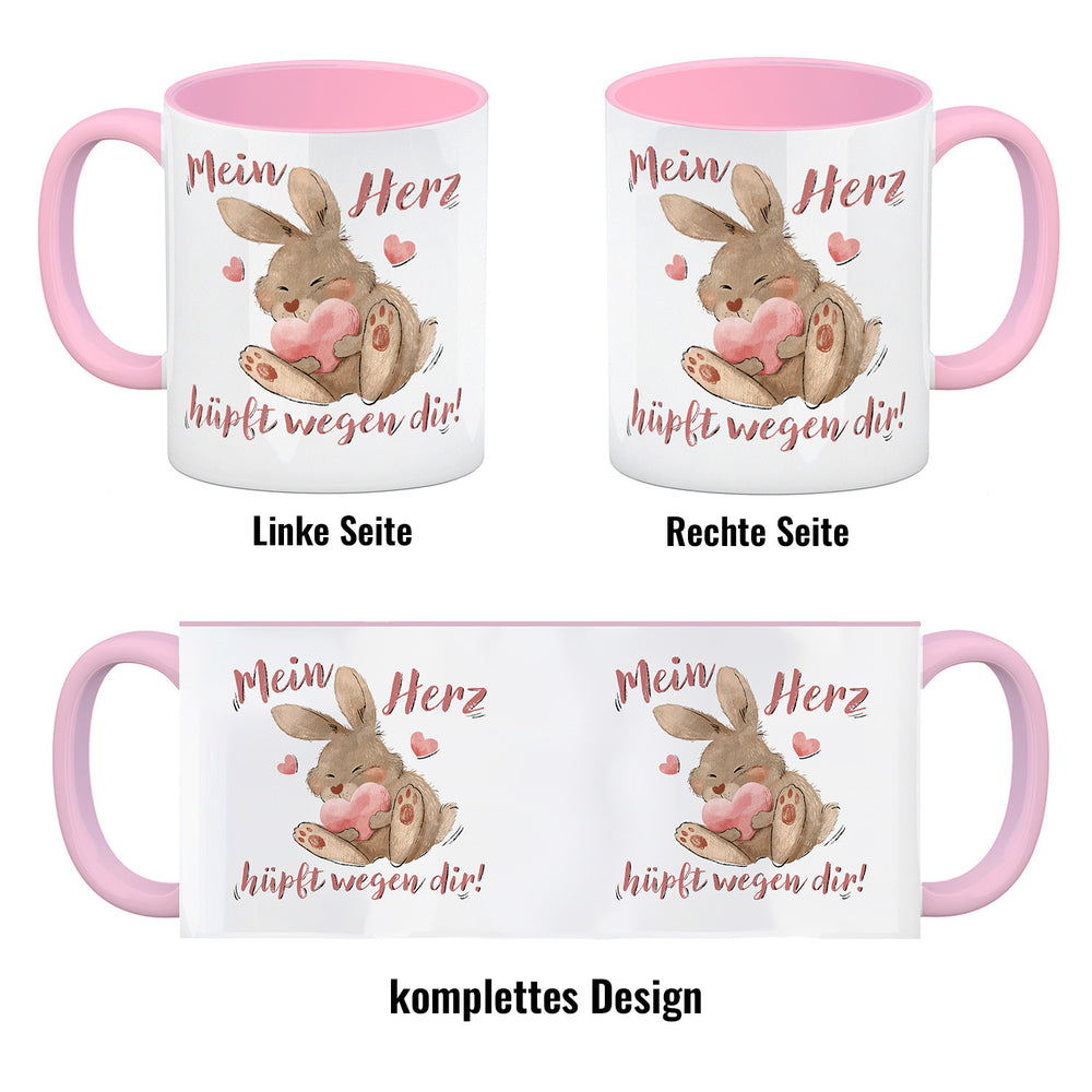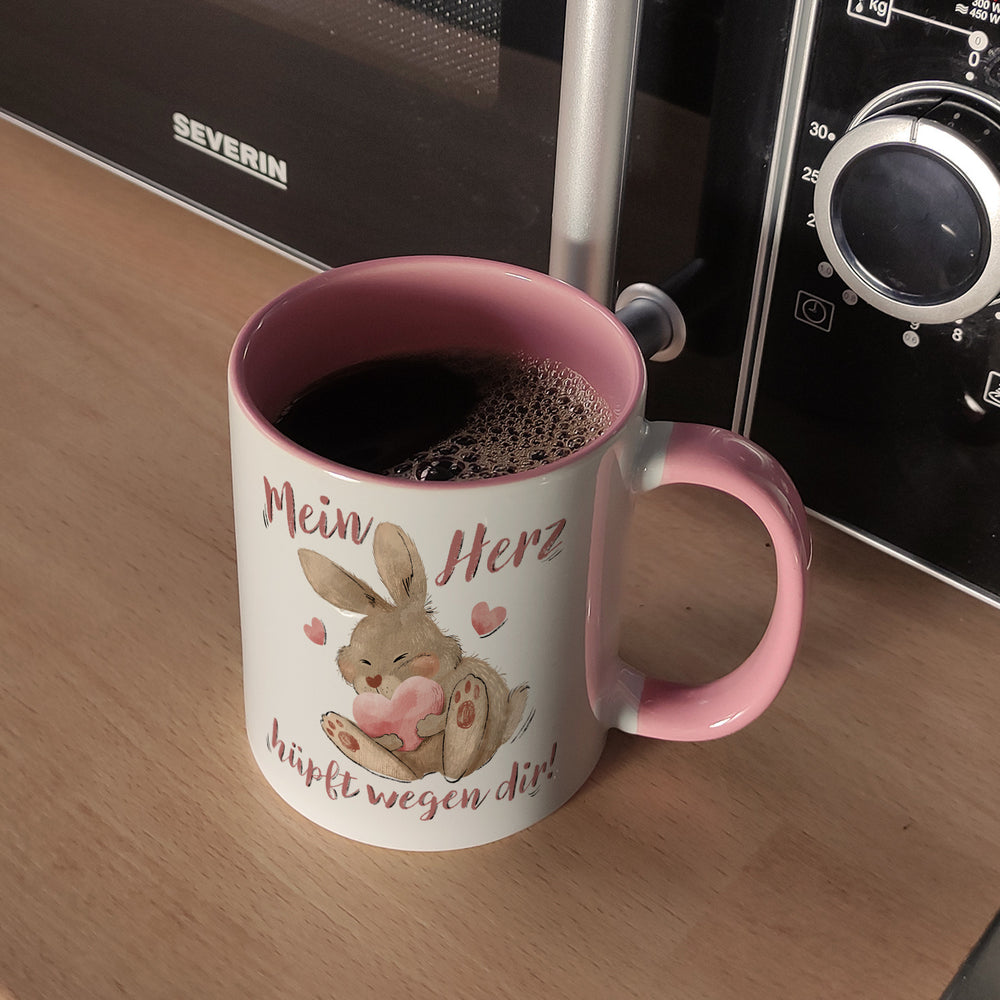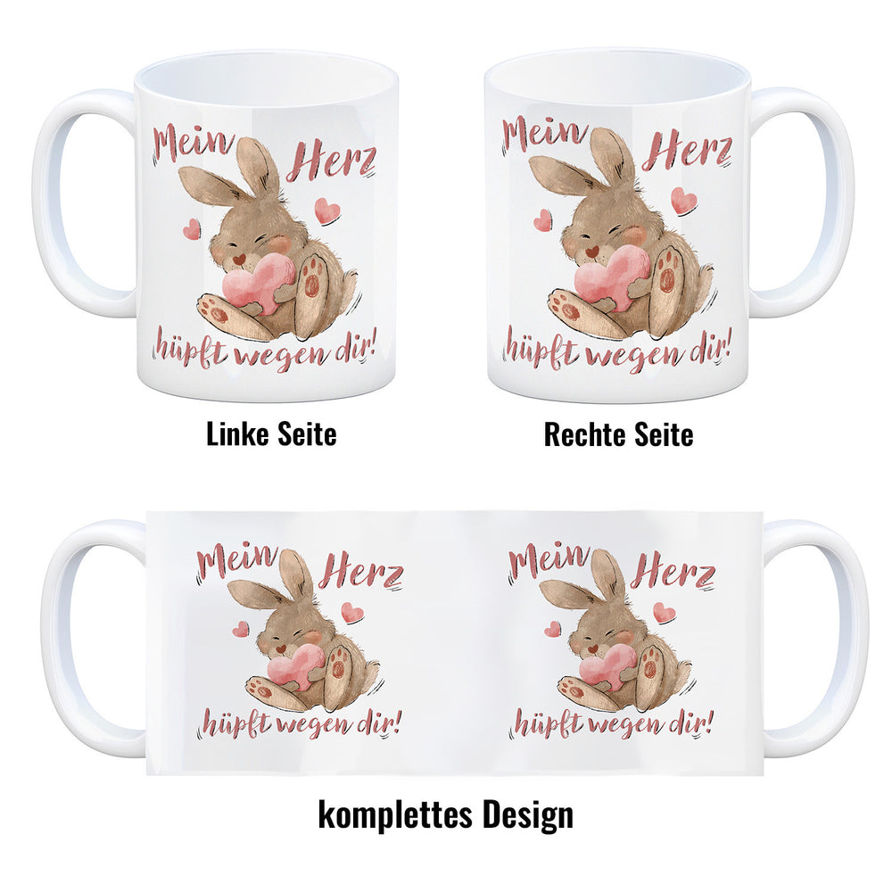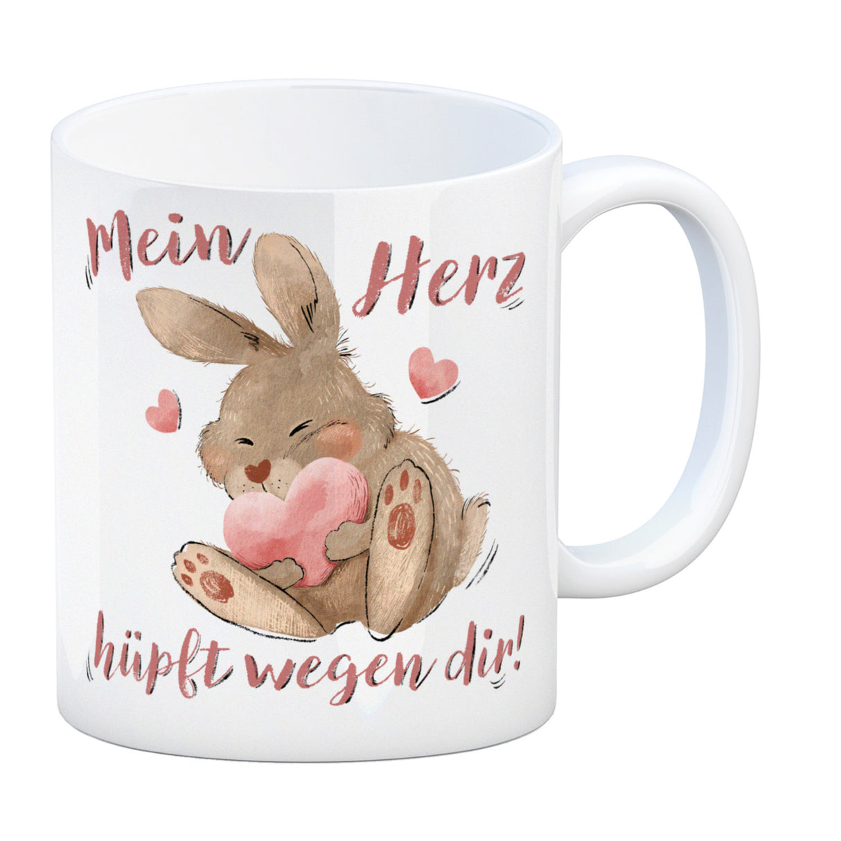 Hase Kaffeebecher mit Spruch Mein Herz hüpft wegen dir