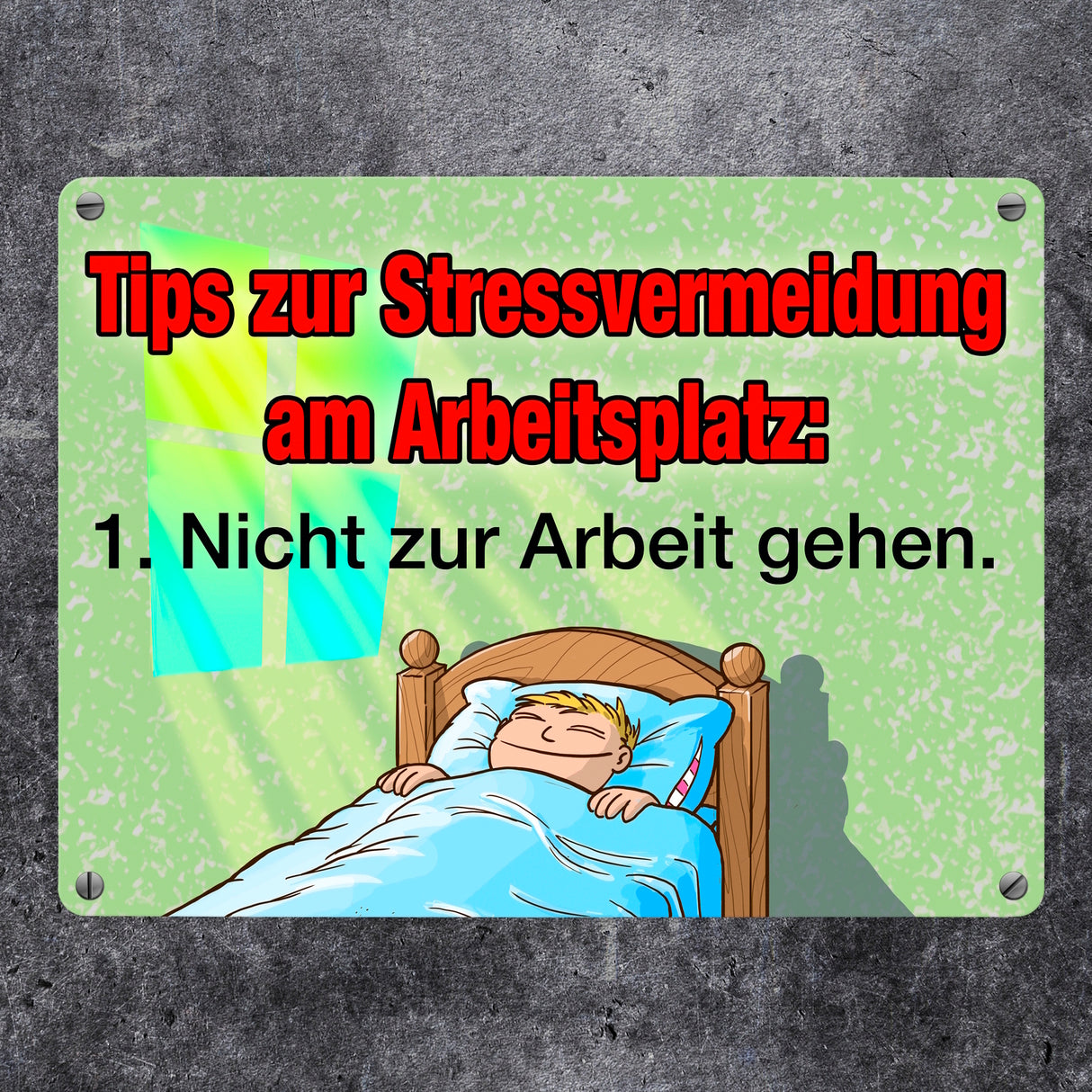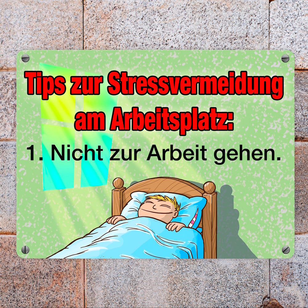Metallschild Tips zur Stressvermeidung am Arbeitsplatz - 15x20 cm ist auf Lager und wird versandt, sobald es wieder verfügbar ist
