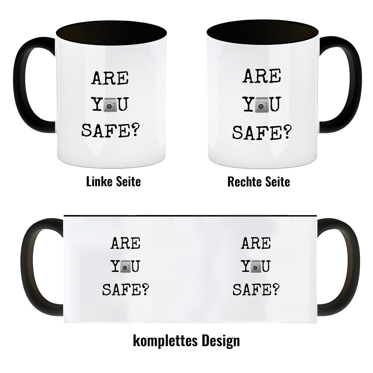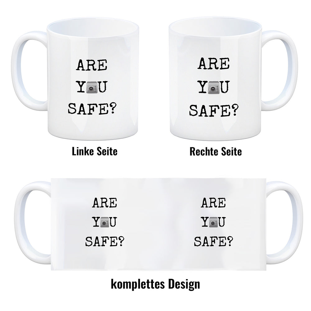 • 1x Denglisch Kaffeebecher - Are you safe? in der gewählten Ausführung