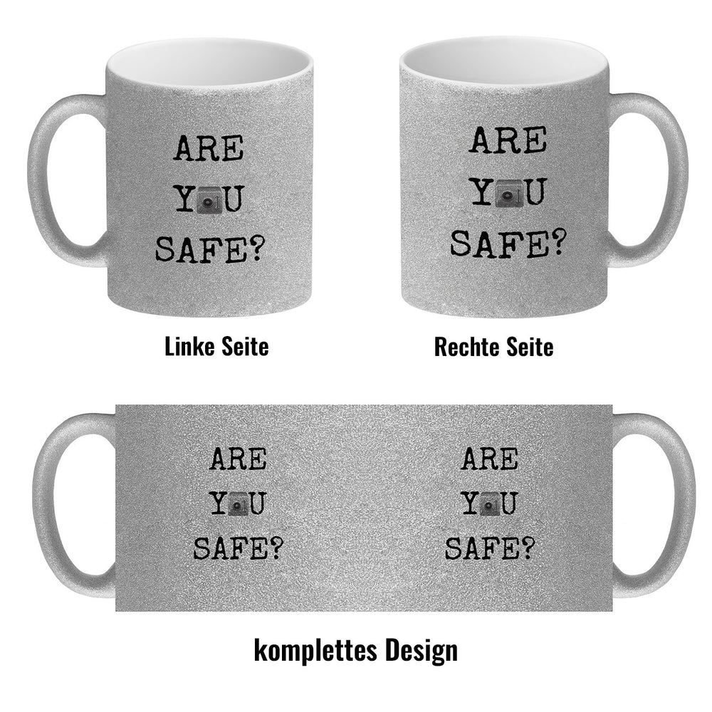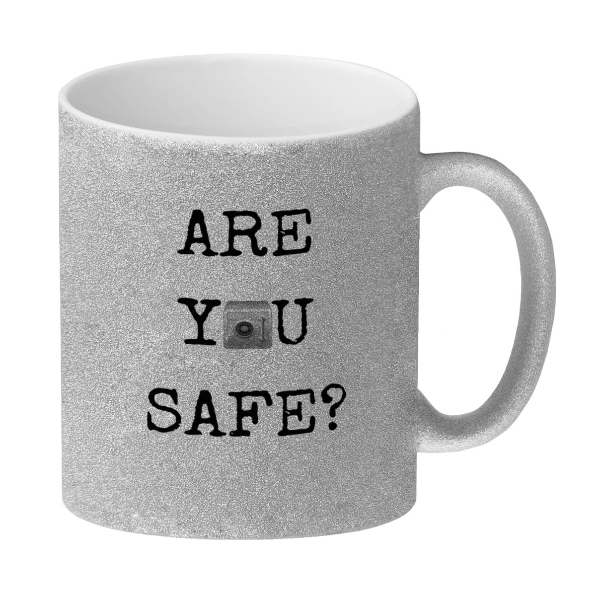 Der Denglisch Kaffeebecher - Are you safe? ist ein witziges Geschenk für alle Bankkaufmänner und Spaßvögel. Der Becher ist in verschiedenen Ausführungen erhältlich, als weiße Standardtasse, mit farbigem Henkel und Innenseite, als edle Glastasse oder in der exklusiven Silberedition mit Glitzereffekt. Mit Sorgfalt in Handarbeit hergestellt in unserer Tassen-Manufaktur in Deutschland. Der Becher ist gefüllt mit dem Spruch „Are you safe?“, was nicht korrekt übersetzt wurde und den Witz des Bechers ausmacht. Der Kaffeebecher ist perfekt für Bürostreiche oder -schreibtische und erinnert an einen Banksafe. Holen Sie sich den Kaffeebecher und teilen Sie Ihren Humor und Ihren Kaffee mit Bankkaufmännern und anderen Spaßvögeln! Schenken Sie Freude und einen Lacher durch den Denglisch Kaffeebecher - Are you safe?