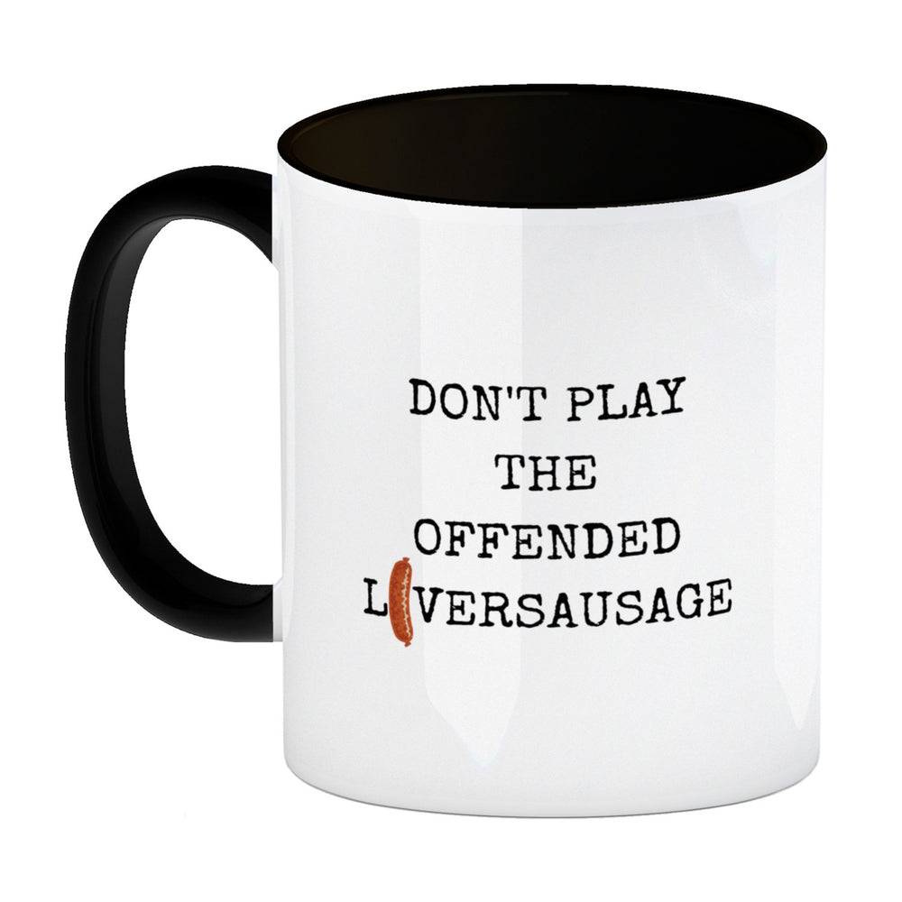 Denglisch Kaffeebecher mit Spruch- Don't play the offended liversausage