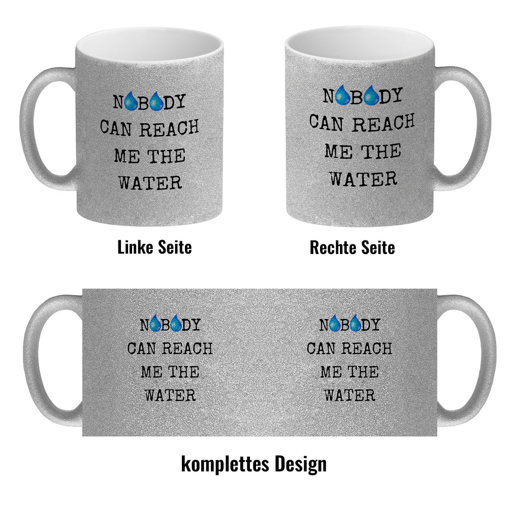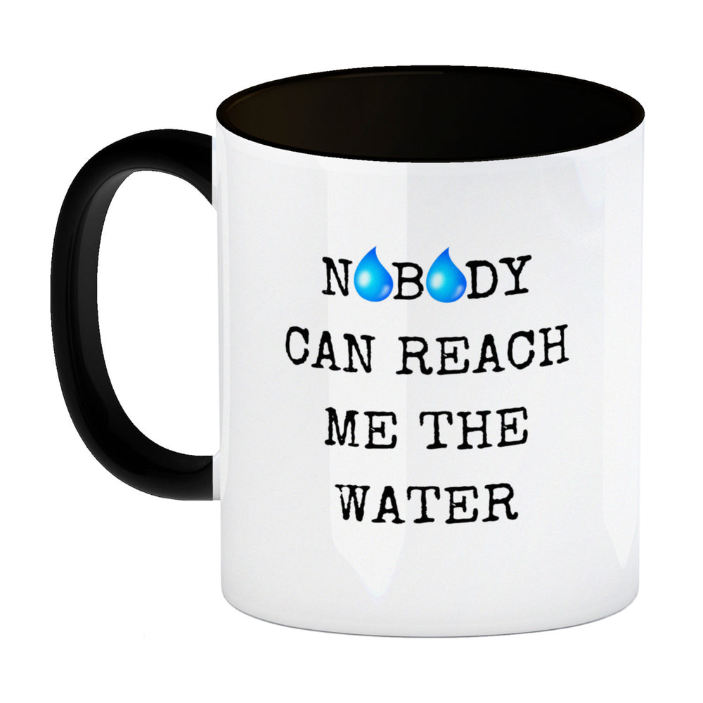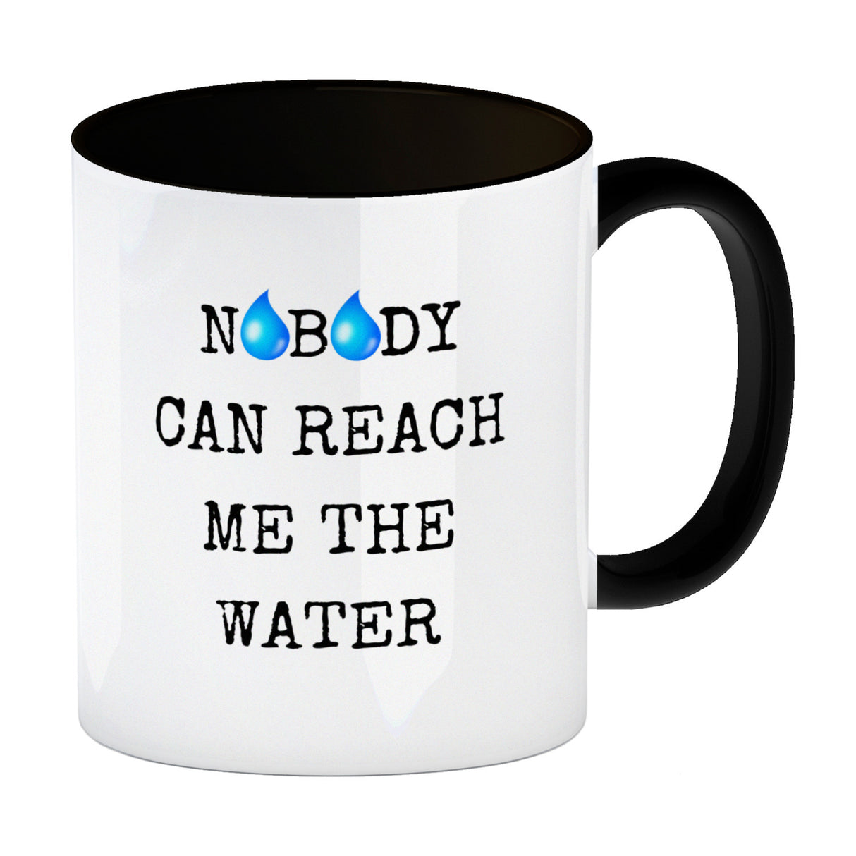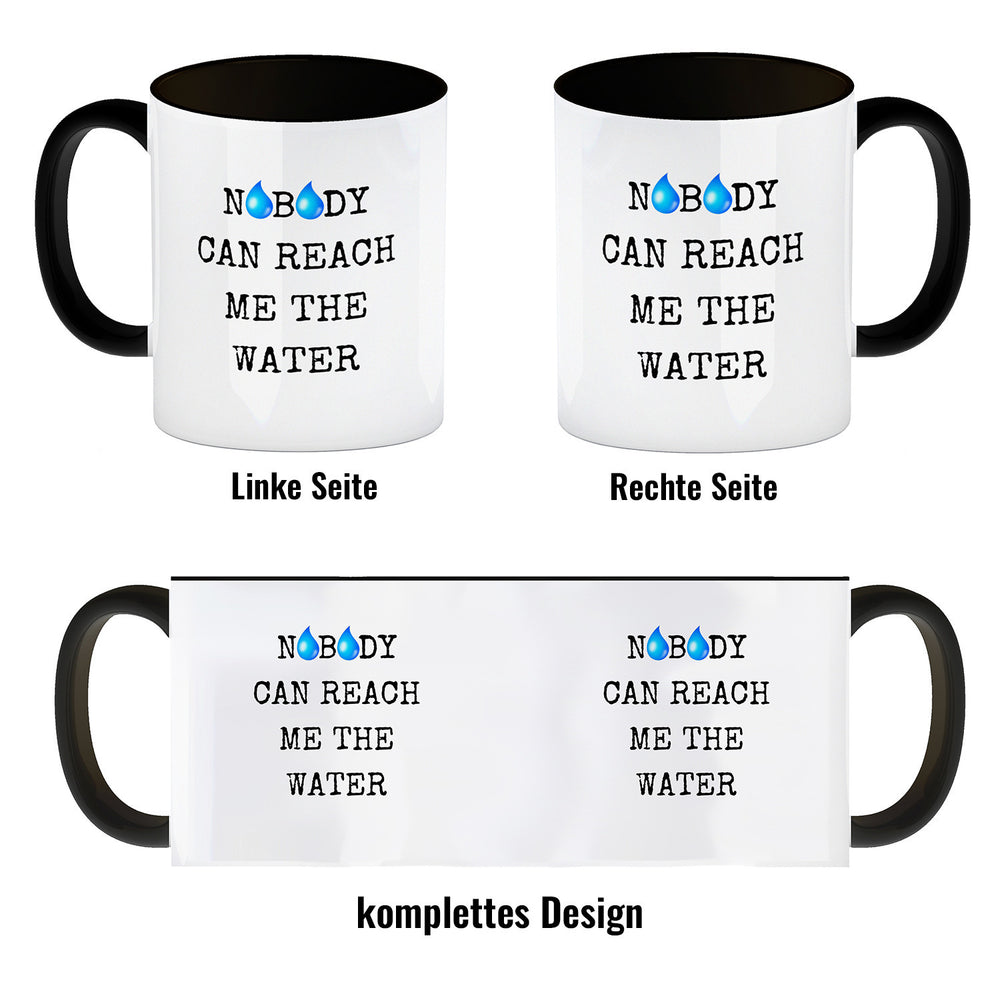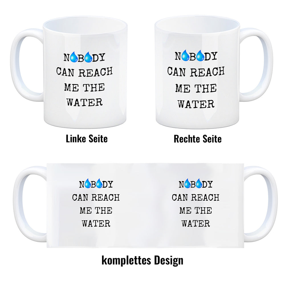 - 1x Denglisch Kaffeebecher mit Spruch - Nobody can reach me the water in der gewählten Ausführung