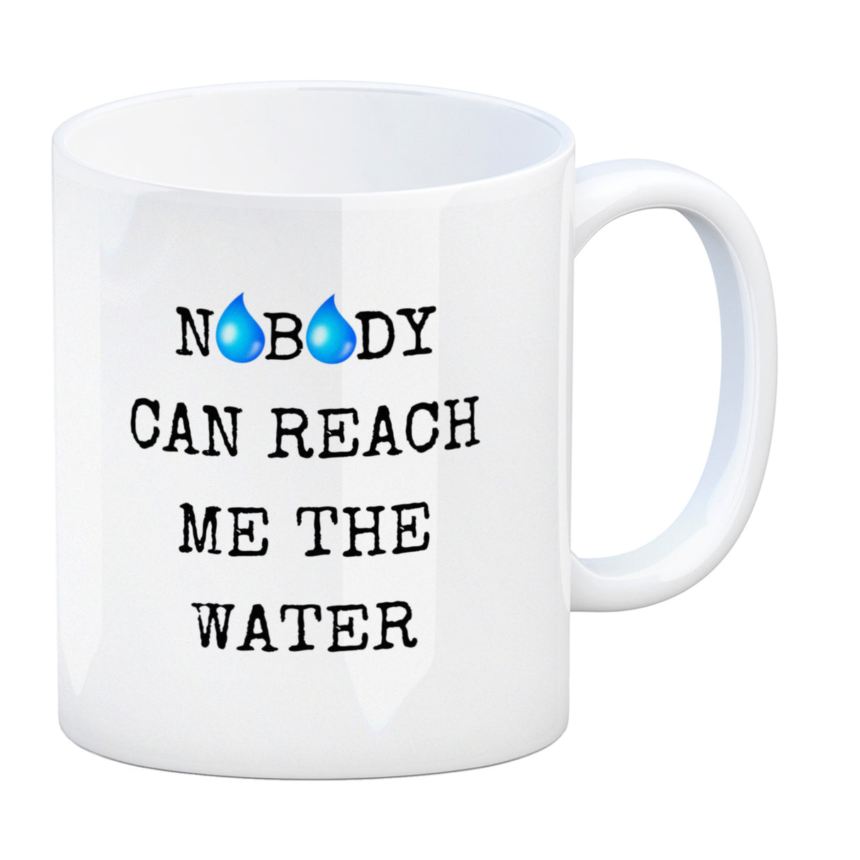 Denglisch Kaffeebecher mit Spruch - Nobody can reach me the water - Weiß ist auf Lager und wird versandt, sobald es wieder verfügbar ist