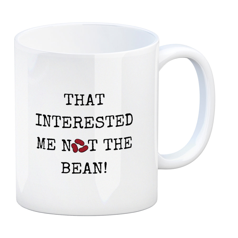 Denglisch Kaffeebecher mit Spruch - That interested me not the bean - Weiß ist auf Lager und wird versandt, sobald es wieder verfügbar ist