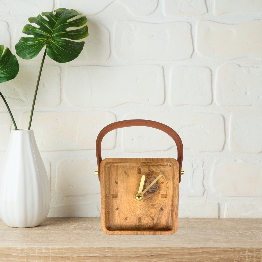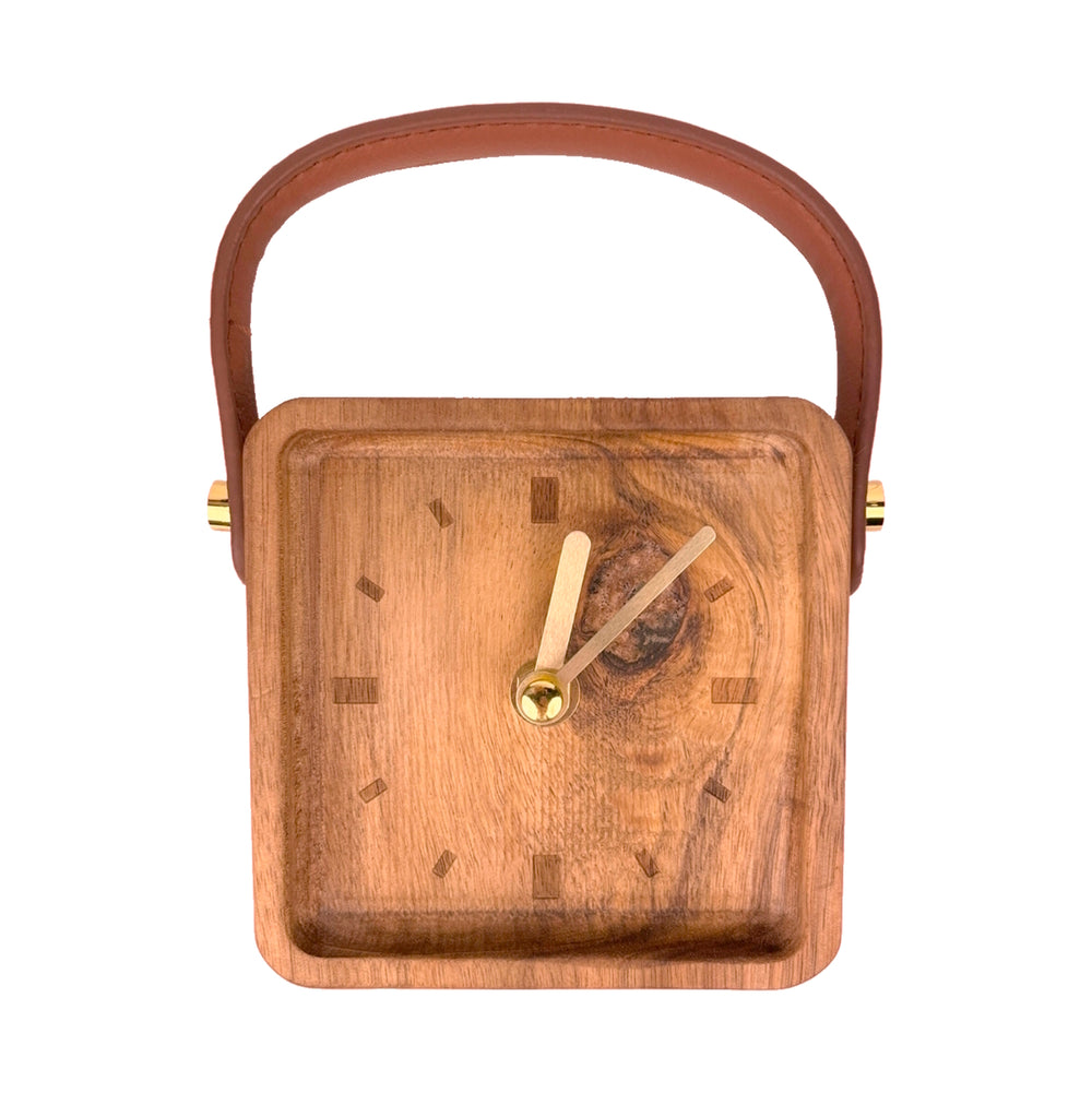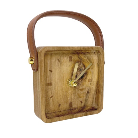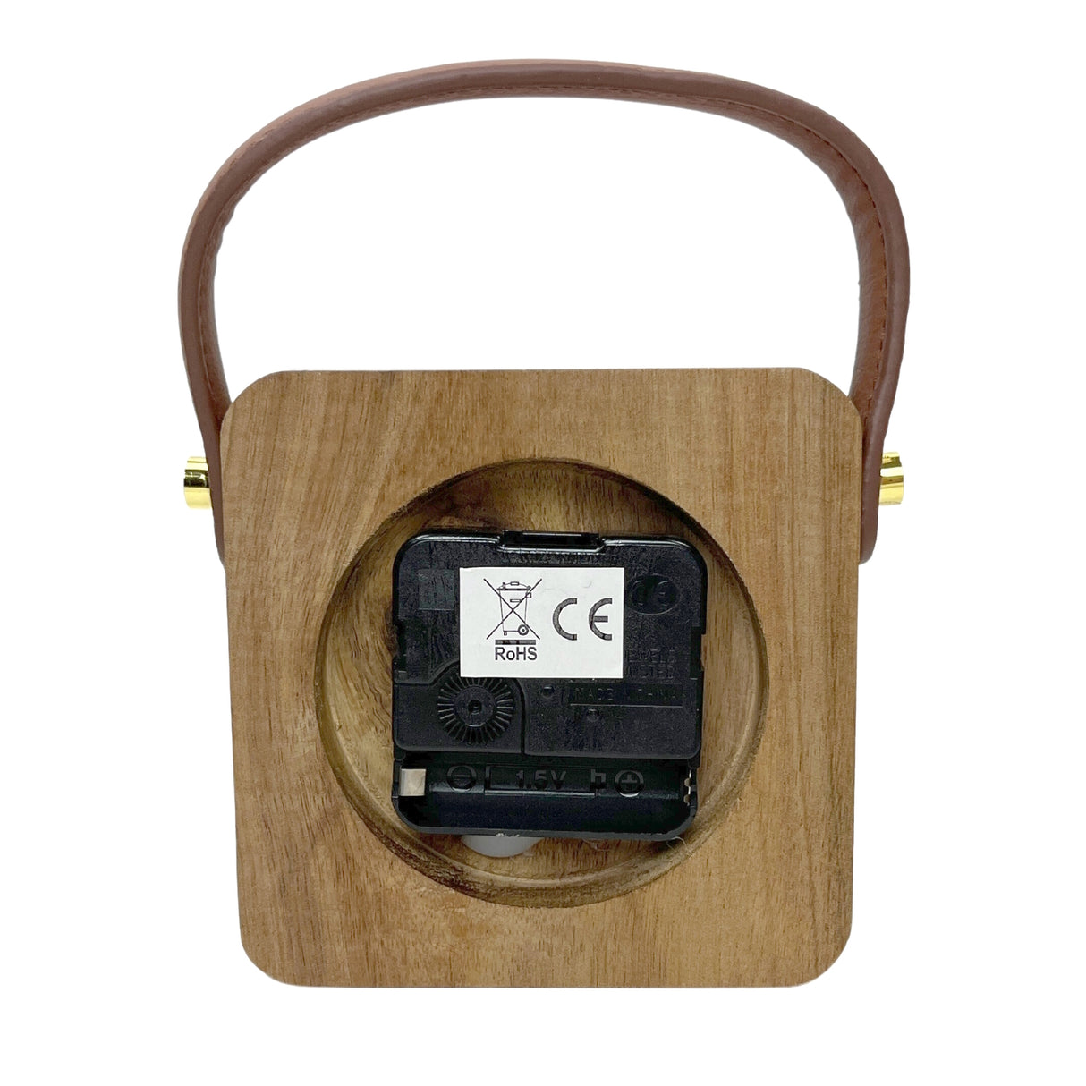 Holz Uhr mit Kunstleder-Gurt und 22cm Höhe