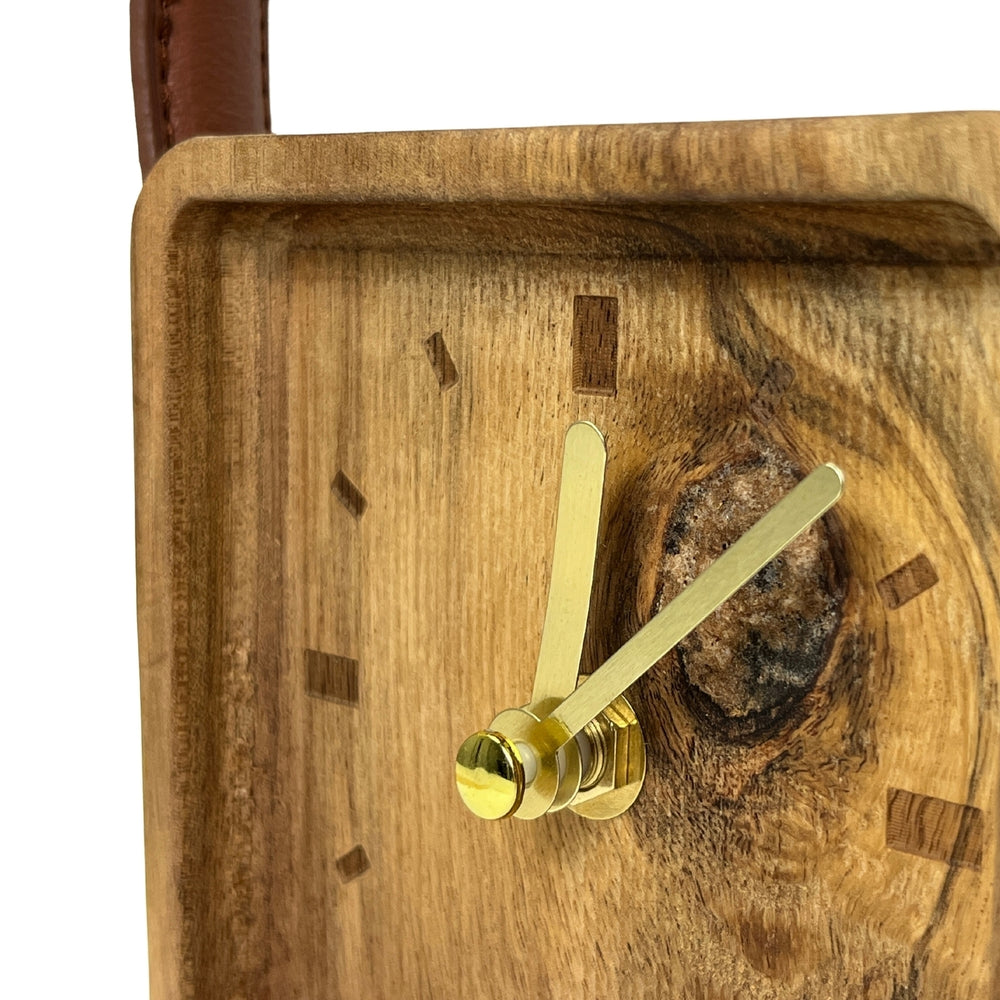 Holz Uhr mit Kunstleder-Gurt und 11cm Höhe