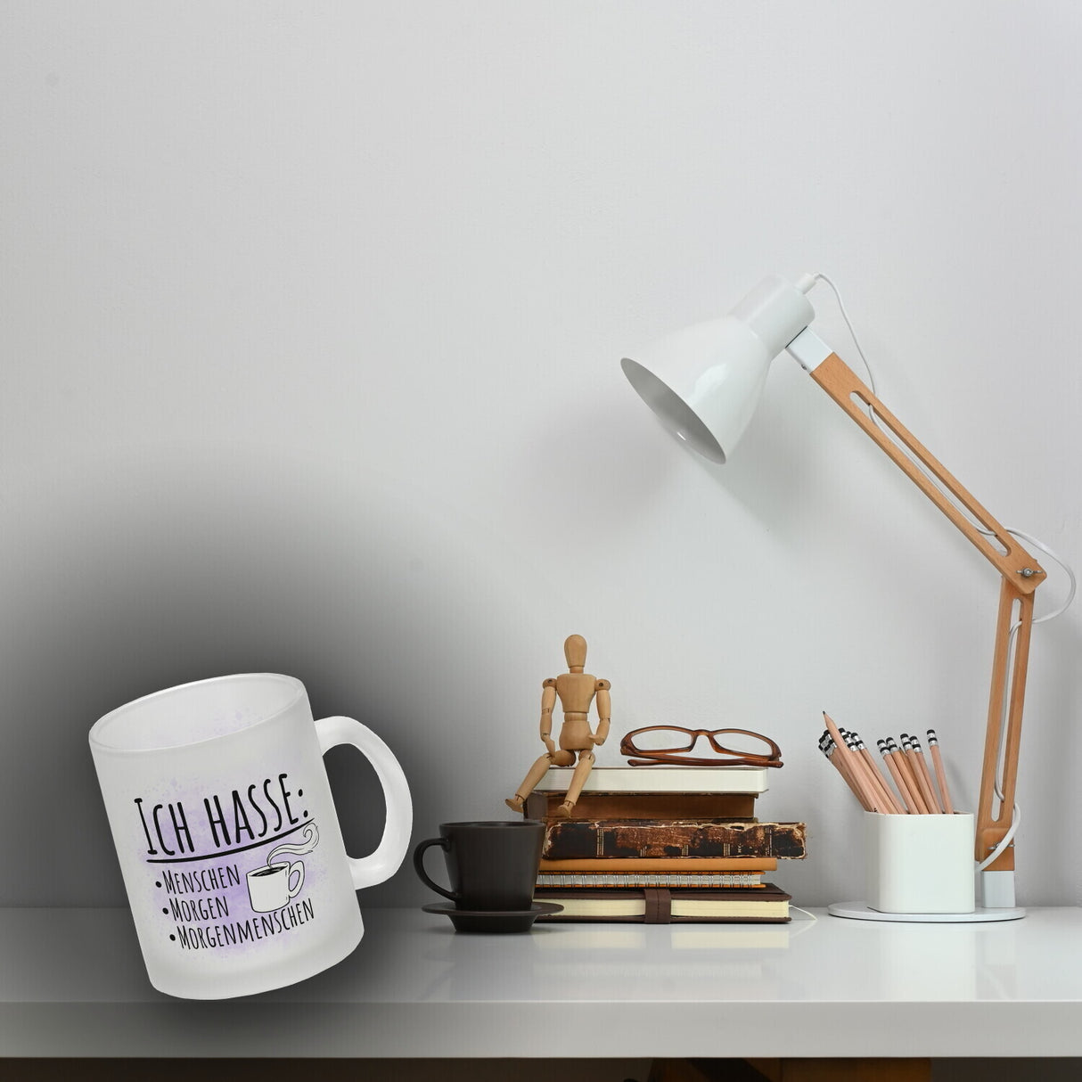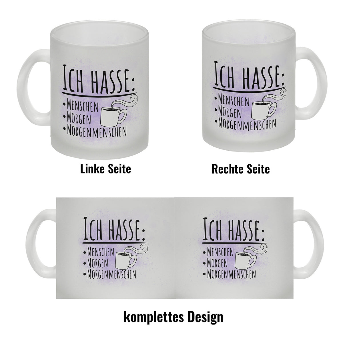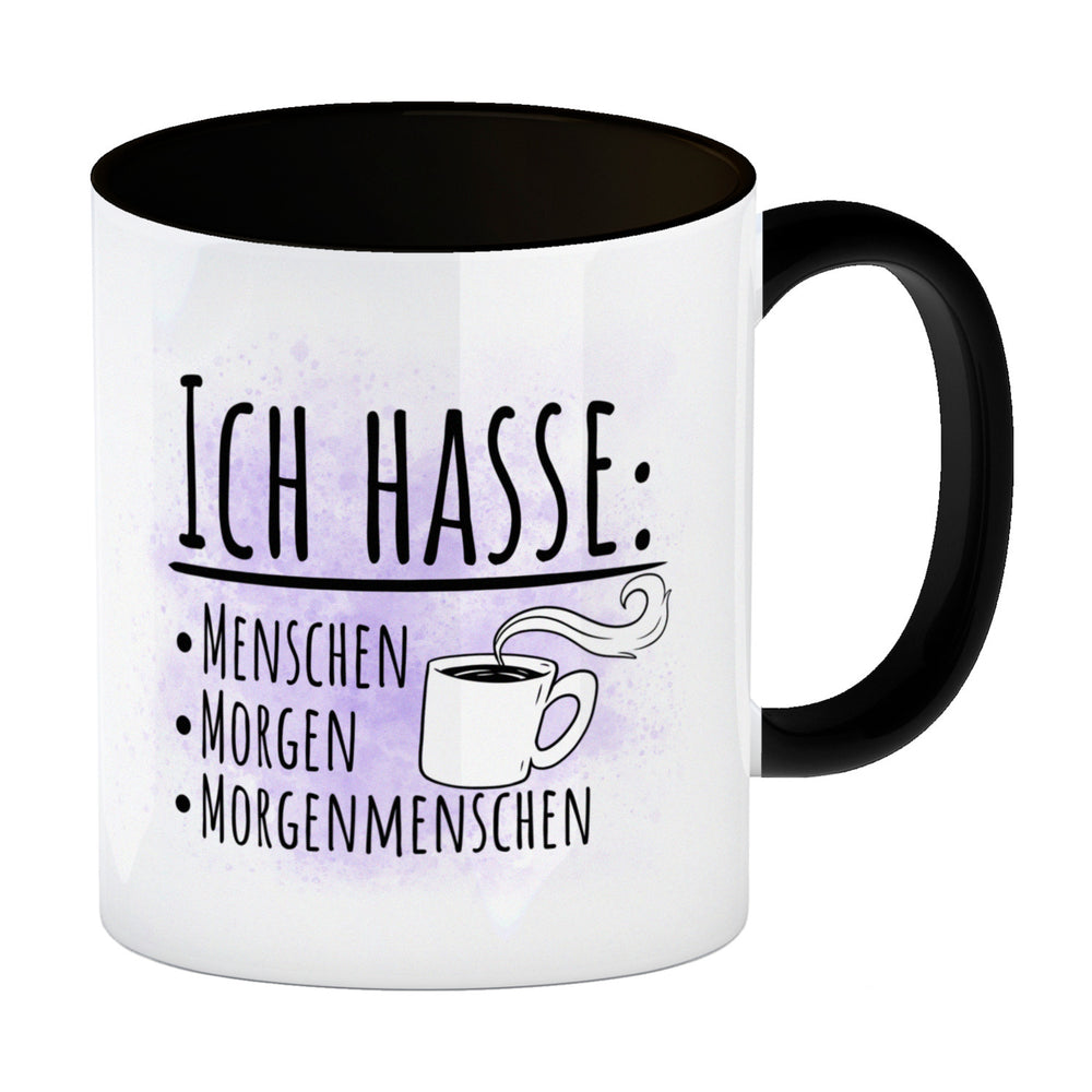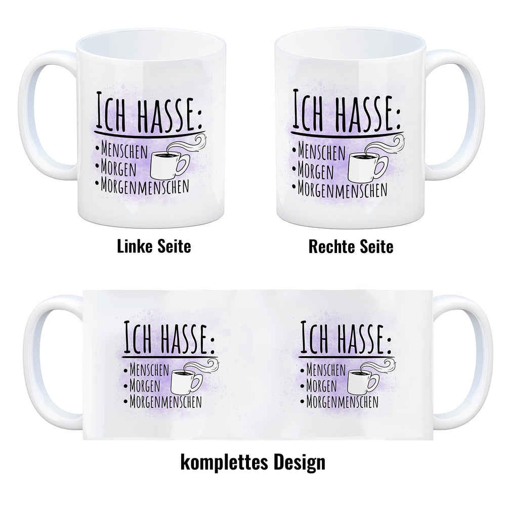 • 1x Ich hasse Menschen Morgen Morgenmenschen Kaffeebecher in der gewählten Ausführung