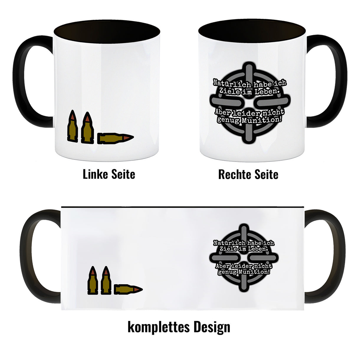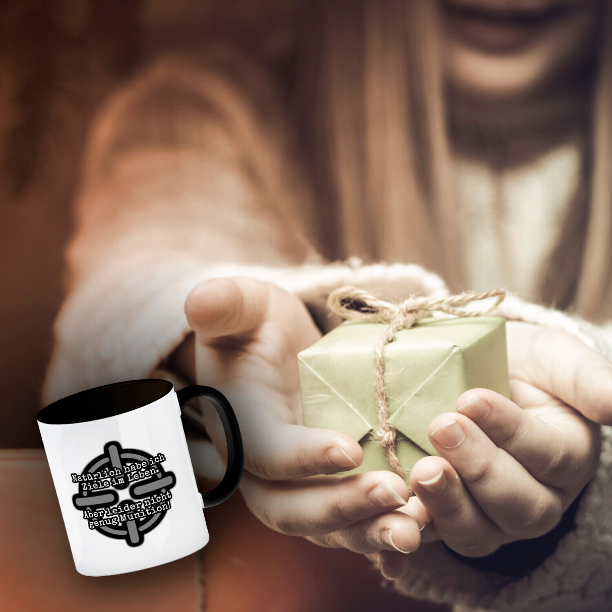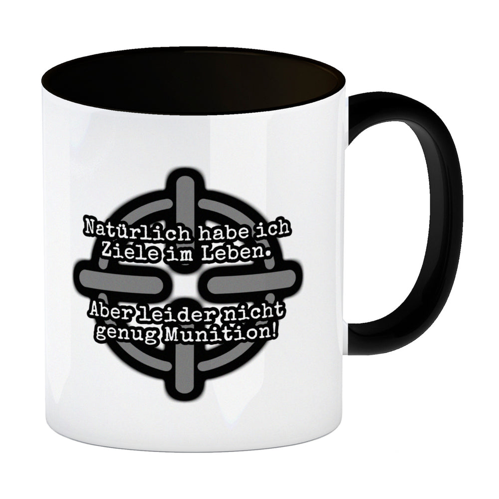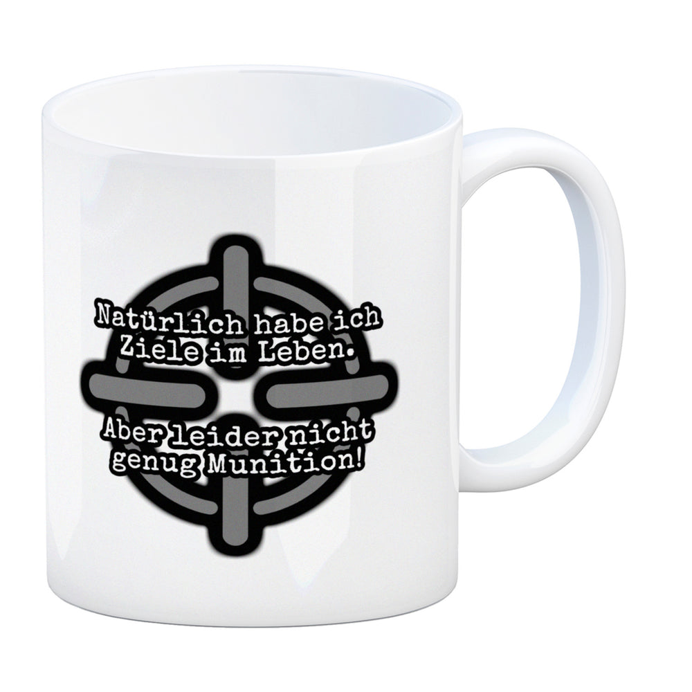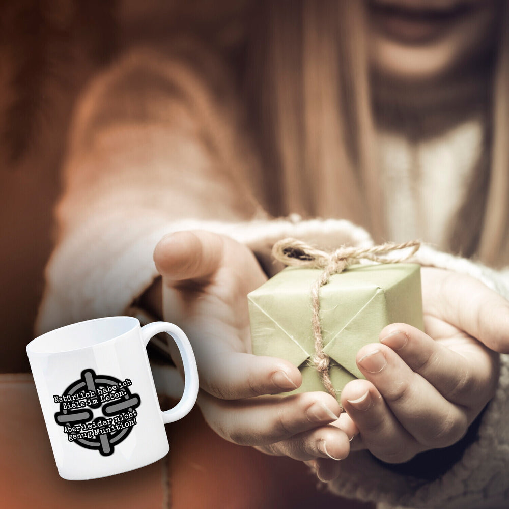 - 1x Kaffeebecher mit Spruch: Ziele im Leben, nicht genug Munition! Fadenkreuz in der gewählten Ausführung