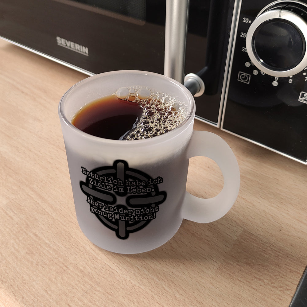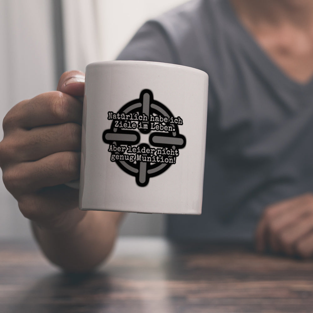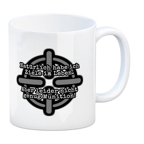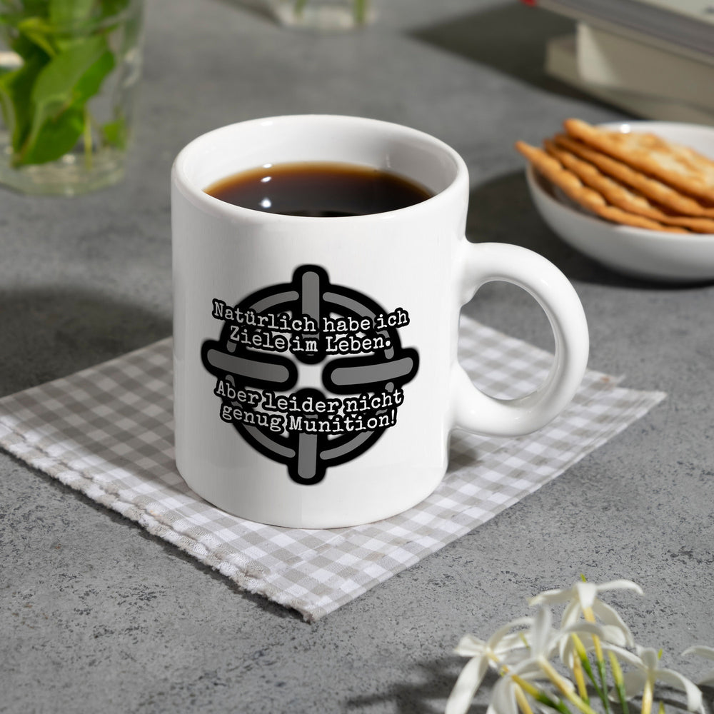 Kaffeebecher mit Spruch: Ziele im Leben, nicht genug Munition! Fadenkreuz