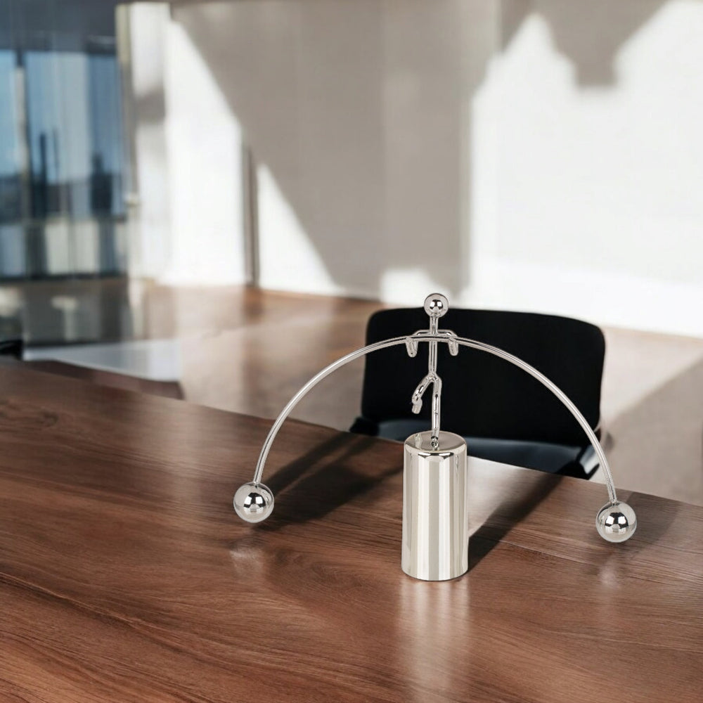 • Diese Dekofigur ist nicht nur faszinierend, sondern auch ein perfektes Beispiel für cleveres Design. Mit einer selbstbalancierenden Gewichtheber-Figur auf einem silbernen Sockel, die sanft schaukelt, macht sie physikalische Prinzipien spielerisch erlebbar. Kugeln an den Armen sorgen für Balance und bieten einen beruhigenden kinetischen Effekt.
