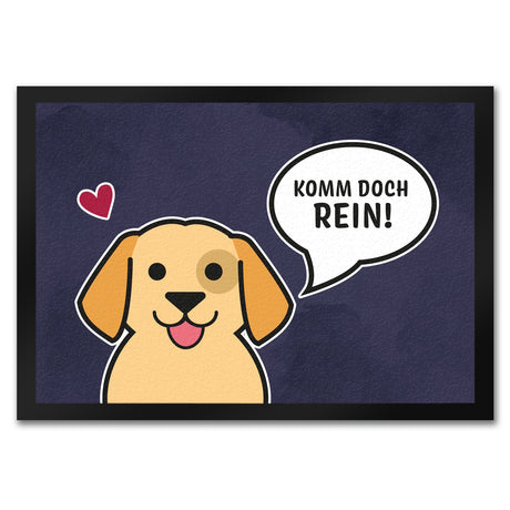 Fußmatte mit Motiv - Komm doch rein mit süßem Hund im Comic Design