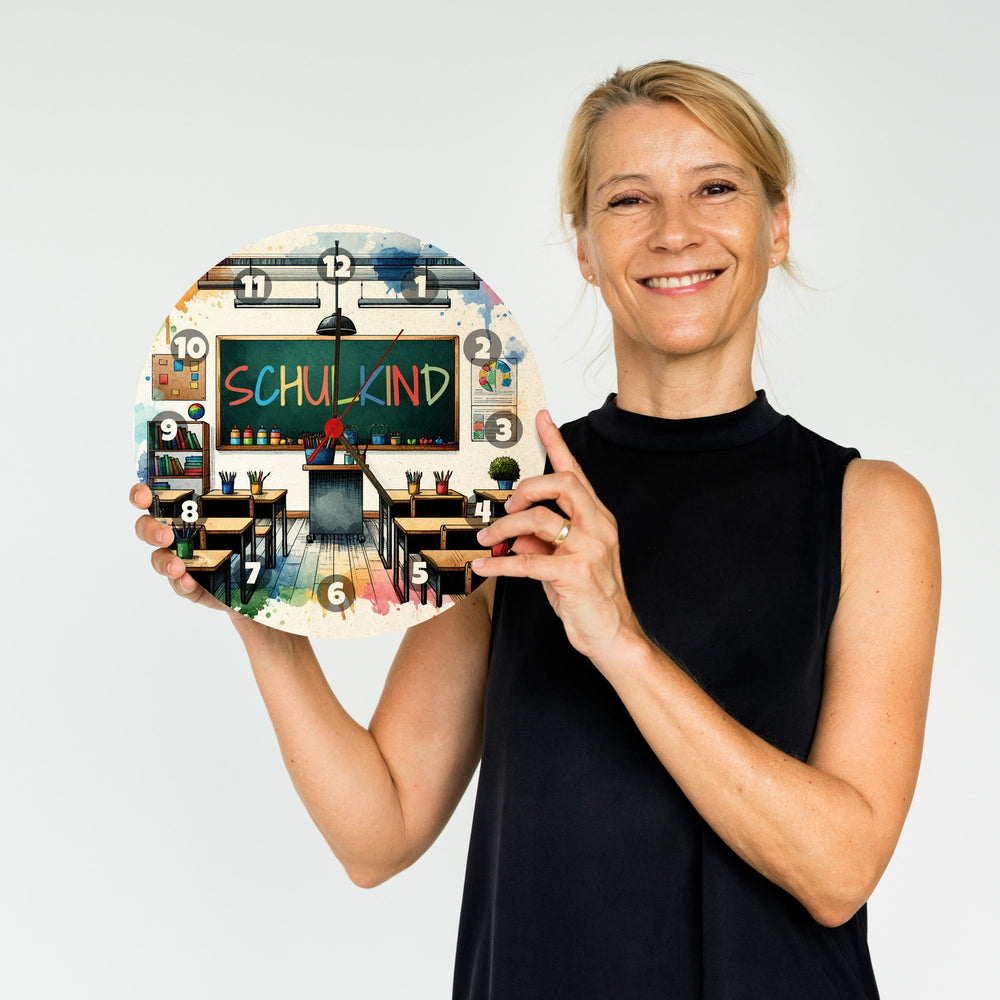 Stell dir vor, du könntest die Zeit in deinem Klassenzimmer oder Kinderzimmer mit einer Prise Freude und Farbe versüßen. Unsere Schulkind Wanduhr ist genau das, was du brauchst! Sie ist perfekt geeignet für Schulkinder, die gerade in die aufregende Welt des Lernens eintauchen. Mit ihrem bunten Design und dem fröhlichen Schriftzug Schulkind auf einer Schultafel bringt diese Uhr nicht nur die Zeit, sondern auch Spaß und Motivation ins Kinderzimmer. Wer könnte einer so fröhlichen Uhr widerstehen? Diese Wanduhr ist ein echtes Multitalent! Sie hilft nicht nur dabei, pünktlich zu sein, sondern fungiert auch als wunderschönes Dekorationsstück. Ob über dem Schreibtisch, am Bett oder direkt im Klassenzimmer – die Uhr setzt überall farbenfrohe Akzente und erinnert das Schulkind stets daran, wie besonders diese Zeit ist. Mit ihren lebendigen Farben und dem glücklichen Motiv wird das Lernen gleich viel mehr Spaß machen. Und Hand aufs Herz: Wer hätte nicht gerne eine Uhr, die gute Laune verbreitet?Warum ist unsere Schulkind Wanduhr ein großartiges Geschenk? Ganz einfach: Sie ist liebevoll und farbenfroh gestaltet, was sie ideal für Kinder macht, die gerade eingeschult wurden. Dieses Geschenk zeigt nicht nur Zeit, sondern auch, dass du an den besonderen Meilenstein im Leben des Kindes denkst und ihn feierst. Egal ob für das eigene Kind, die Nichte, den Neffen oder das Enkelkind – diese Uhr ist ein wunderbares Präsent, das garantiert Freude und Begeisterung auslöst. Also, worauf wartest du noch? Lass die Zeit in bunten Farben vergehen!
